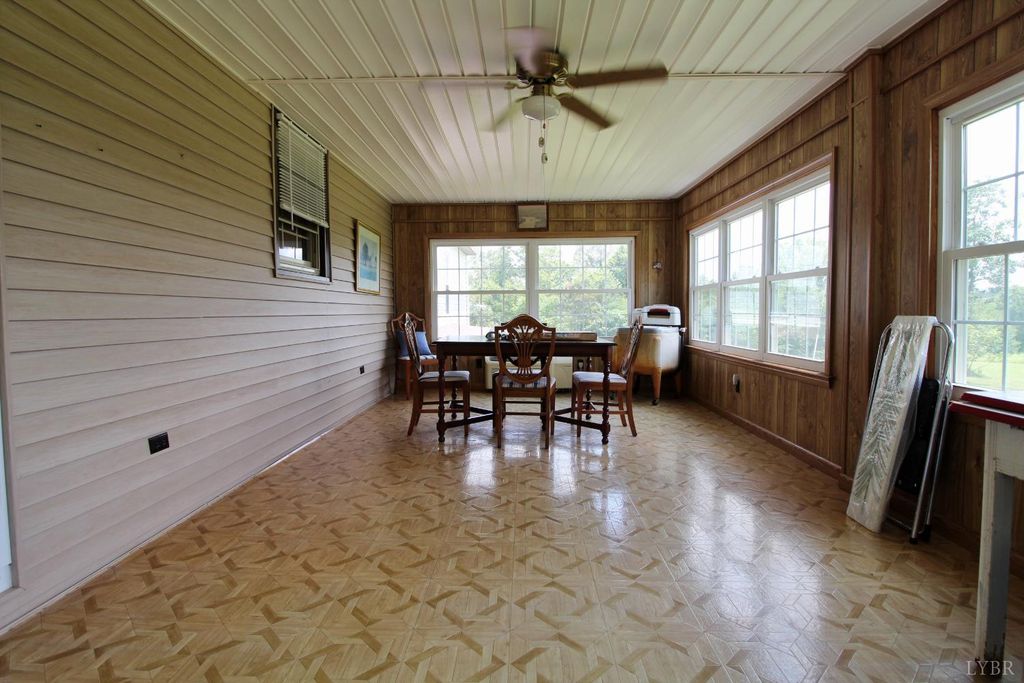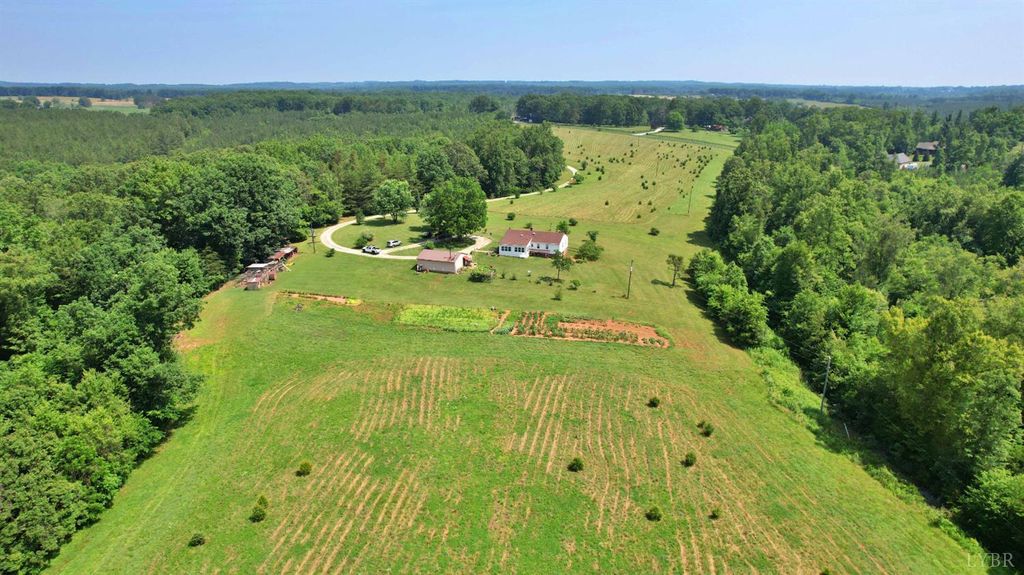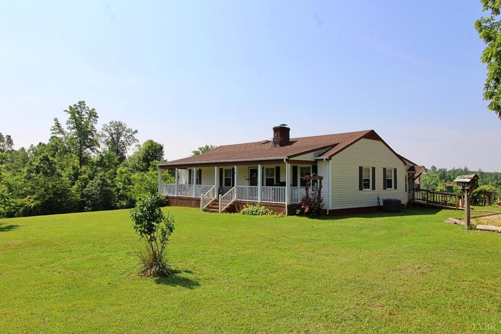 Discover your dream countryside escape sitting well off the road with a 2400 sq' home on 71 private acres of breathtaking land in Appomattox, VA. This versatile property has multiple fields with gorgeous pastures, a very nice creek and abundant timber. Ideal for farming, incredible recreational opportunities or your own homestead. Peach trees line the driveway of this super private property that has all sorts of gardens and even a very high producing grapevine. The home features a full length covered front porch plus a sunroom to take in all of the views. This super OPEN floorplan has a vaulted ceiling with exposed wood beams and a brick fireplace all open to the kitchen complementing the ample storage and countertop space. The main level has 3 bedrooms, 2 full baths and the living area. Basement is an entire second home with its own kitchen, laundry a HUGE bedroom plus a living area. Exterior has a circular driveway, garage/workshop and a great chicken coop. Call today to take a look!
