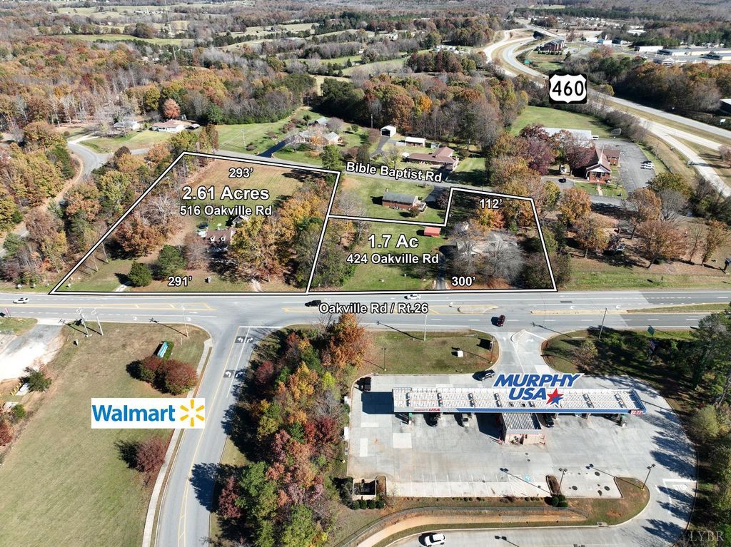 1.7acres just off the US-460 interchange with 300' of excellent frontage on Rt.26 directly across from Walmart and Murphy USA. Additional 112' of road frontage at the back of the property as well. The lot lays great and has a brick ranch home for rental income until redevelopment. Public water is available and sewer is nearby. Traffic count of 13,000 VPD (17,000 VPD along US-460). Neighboring 2.61 acres with additional 291' of frontage on Rt.26 also available.