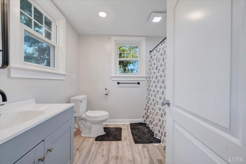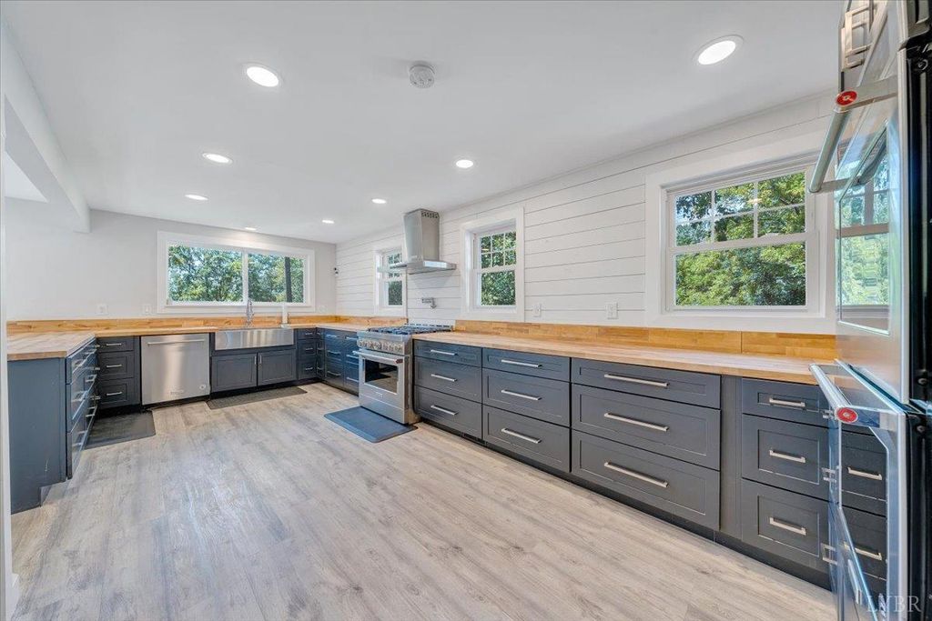 Charming, fully remodeled farmhouse on over 5 acres, offering the perfect blend of vintage character and modern conveniences. Enjoy a spacious main level with a large living room featuring beautiful wainscoting and natural light. The main-level primary suite includes an en-suite bath, along with main-level laundry and a powder room. The kitchen is a true showstopper with butcher block countertops, a walk-in pantry, coffee bar, farmhouse sink, and stainless steel appliances, including a 6-burner commercial gas range. Upstairs offers three additional bedrooms and a full bath. Relax on the brand-new 16x16 deck and soak in pastoral views. The property also includes a detached 2-car garage and several outbuildings, ideal for hobby farming, a workshop, or storage. Located just 10 minutes from Smith Mountain Lake and ready for your chickens, goats, garden, or simply space to roam and enjoy the countryside lifestyle.