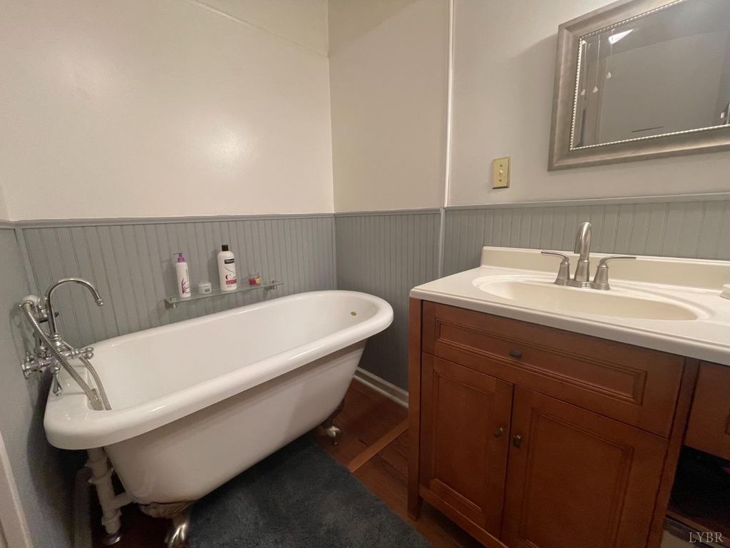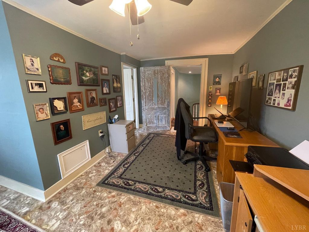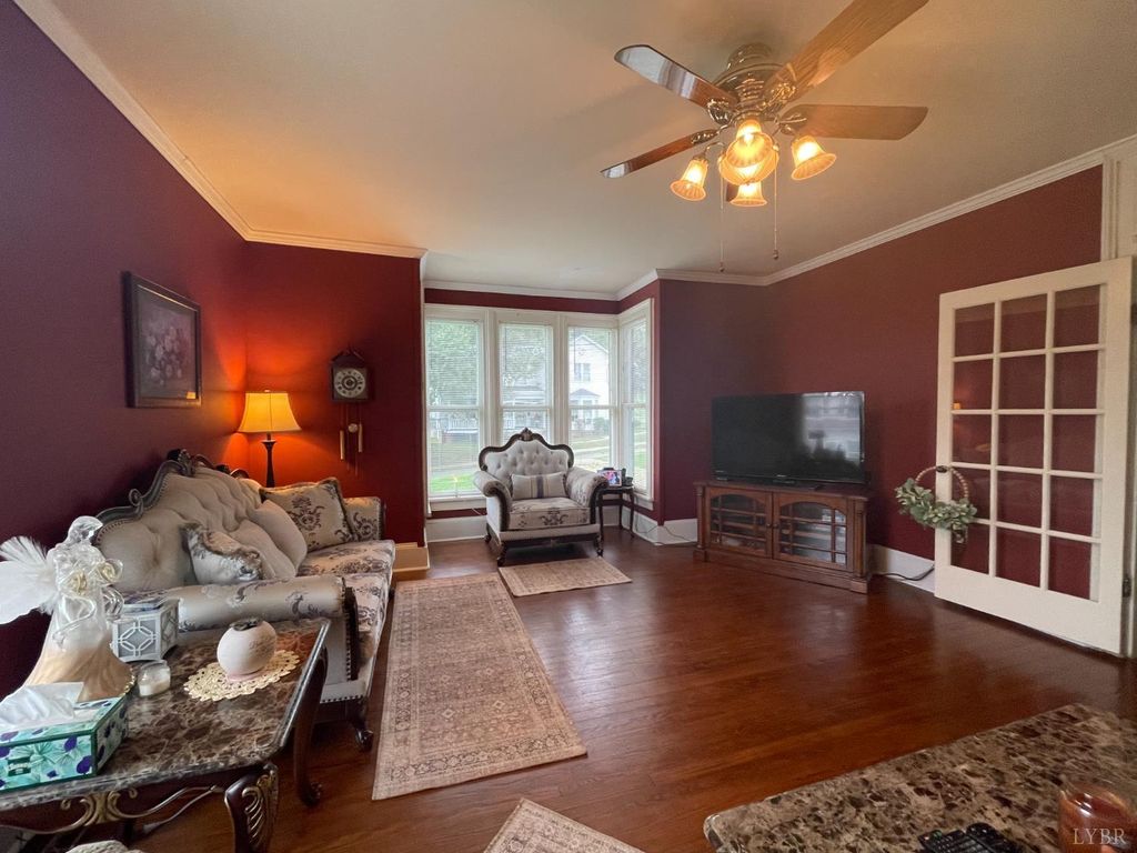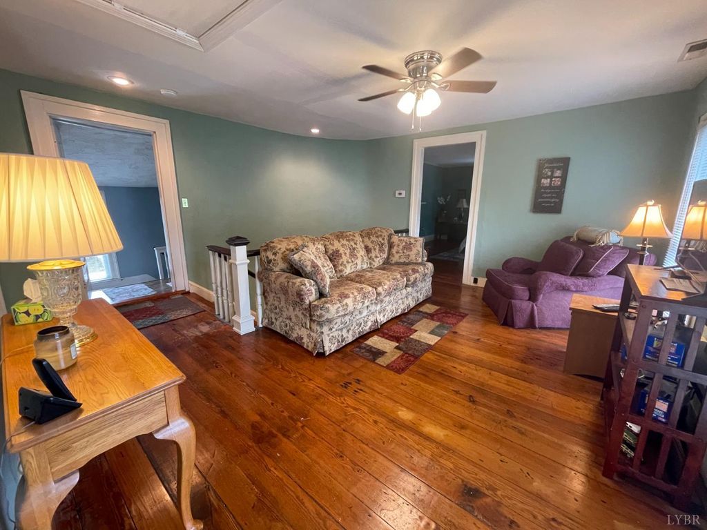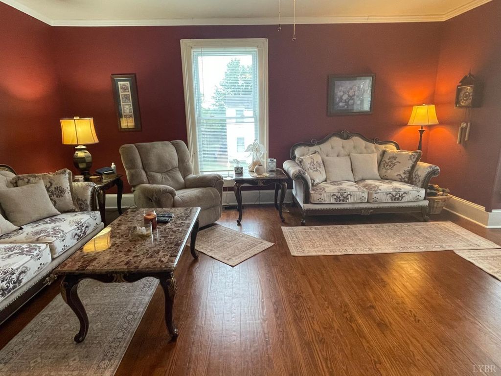 Charming historic home in the heart of Bedford, VA. Features spacious main-level living with an eat-in kitchen and dining room. The upper level offers an open gathering space, ideal for family activities, with potential for an apartment. Enjoy a sunporch, storage shed, and concrete off-street parking. This well-insulated has beautiful wood flooring throughout. Conveniently walkable location. Covered front porch, rear patio in the fenced back yard. Replacement windows, updated kitchen has Kohler cast iron sink and updated appliances, butcher block countertops. Basement workshop has great windows, lots of light. Updated bathrooms, tons of character!
