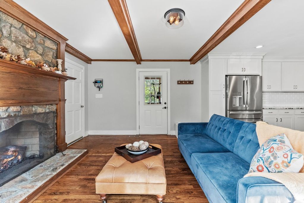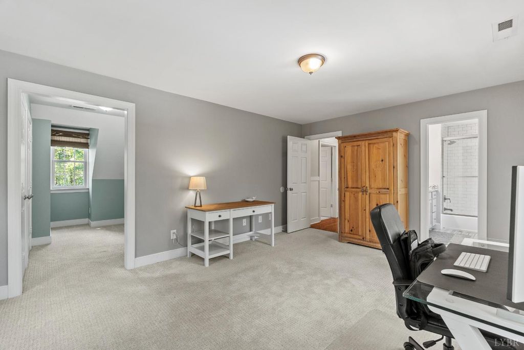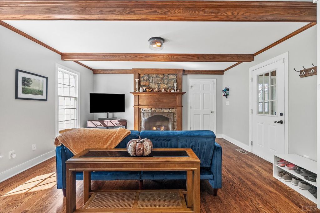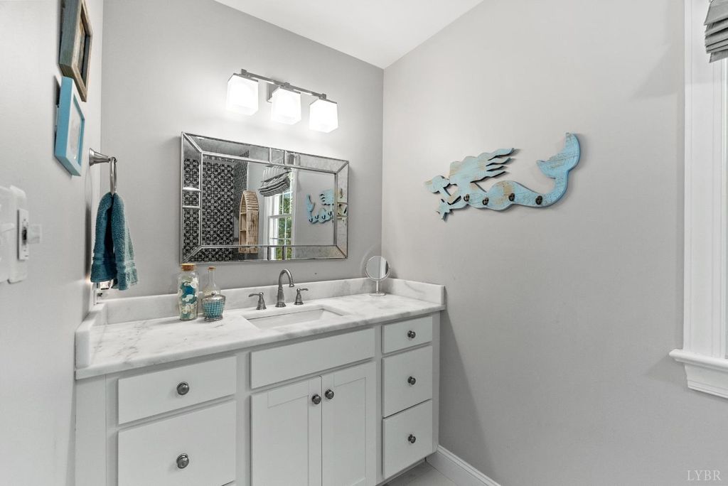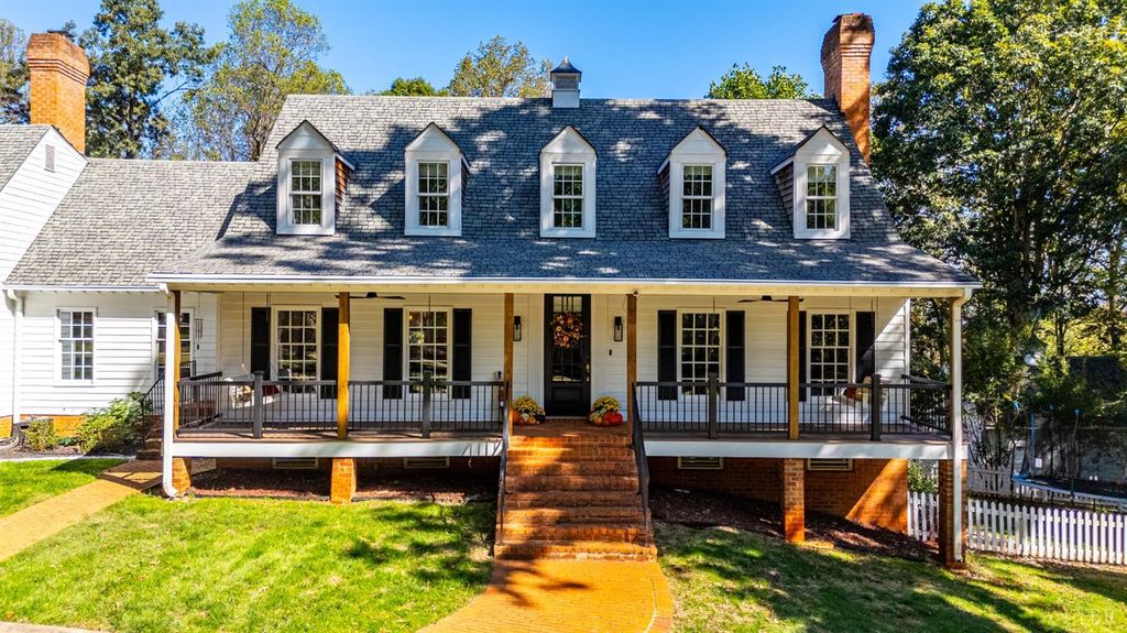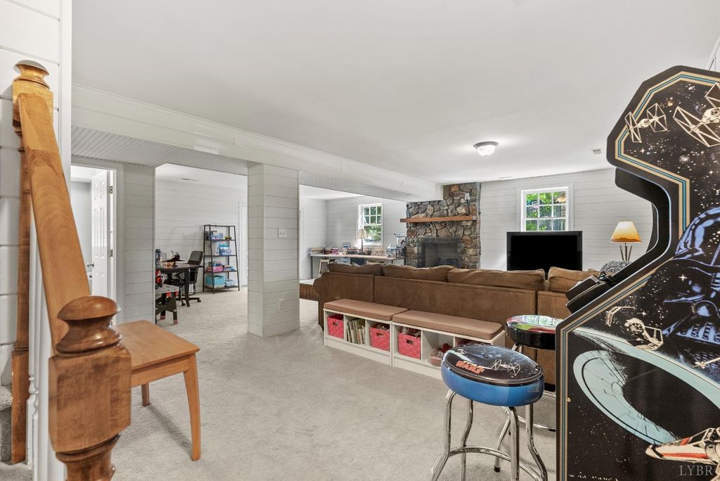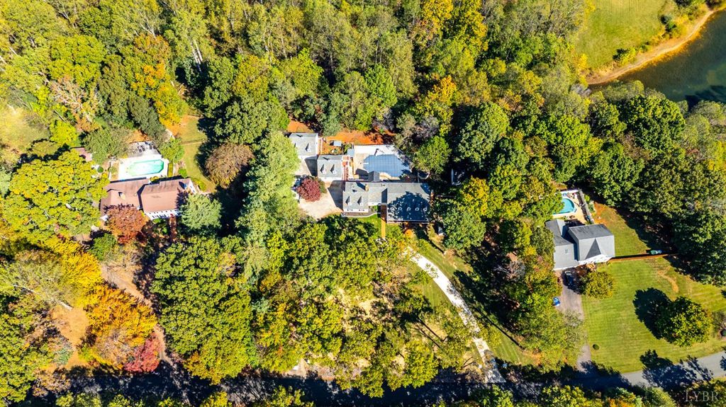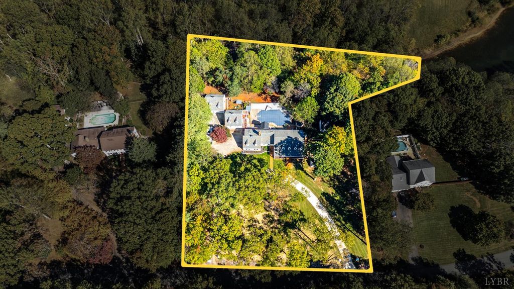 Quiet living in private, desirable Fox Runn neighborhood in Lynchburg-Boonsboro, Bedford County offers modern comfort, warmth, and tranquility. The inviting front porch opens to a flowing main level floorplan with spacious living and dining areas, two stone fireplaces, and an updated kitchen with granite counters and a large island perfect for entertaining. Upstairs features four bedrooms and three full baths, while the terrace level includes a spacious den with fireplace, laundry room, full bathroom and office. Private backyard boasts pool, patio, and wooded views with glimpses of the lake. Property includes lake access with dock and deck, attached and 2 detached garages, and a 2-stall horse barn, HOA allows horses. Kids will love the treehouse, playhouse, and chicken coop. Discover the home you've been waiting for.