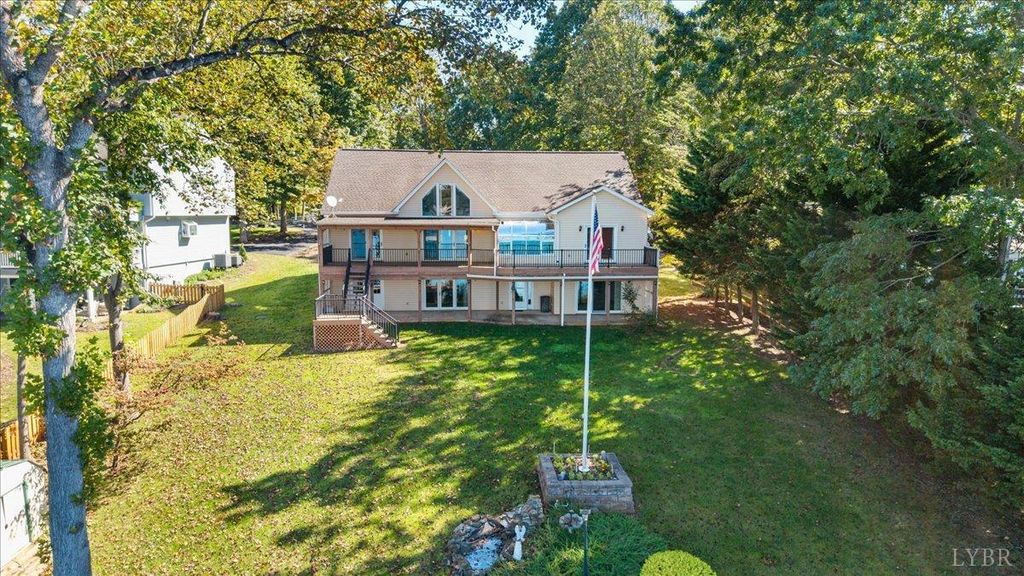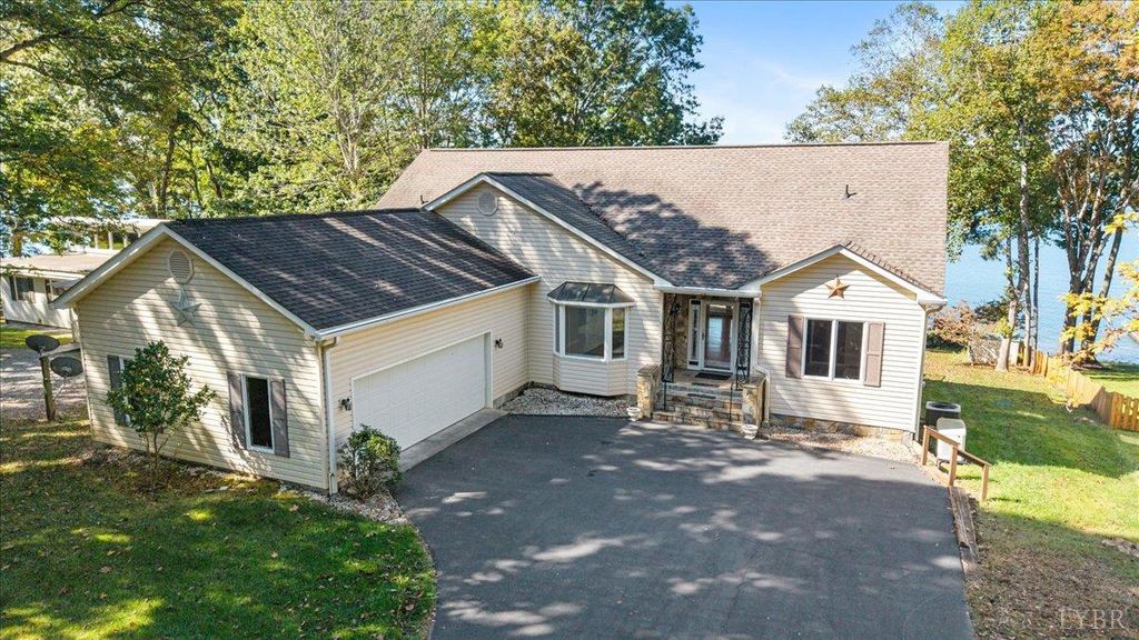 Enjoy the best of lakefront living at Smith Mountain Lake! This spacious 4-bedroom, 3-bath home offers over 3,600 sq. ft. and sits just 100 feet from the water's edge on a gentle, easy slope, no steep climbs here! The open floor plan features cathedral ceilings, abundant natural light, and beautiful lake views. The main-level primary suite includes a private bath and large walk-in closet. A roomy laundry area provides space for an extra refrigerator or freezer. The lower level offers a huge rec room with gas-log fireplace, plus another bedroom with ensuite bath, kitchen, and dining area ideal for guests or an in-law suite. Outdoor living shines with a covered deck, patio, and boat dock, offering plenty of space to relax and enjoy the lake. Additional highlights include a two-car garage, paved driveway, workshop, whole-house generator, and about 100' of water frontage. Nestled in a well-kept neighborhood, this property is ready for your personal updates.