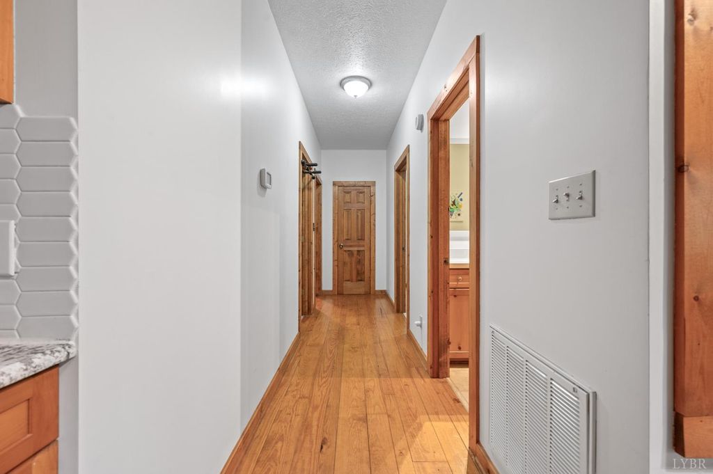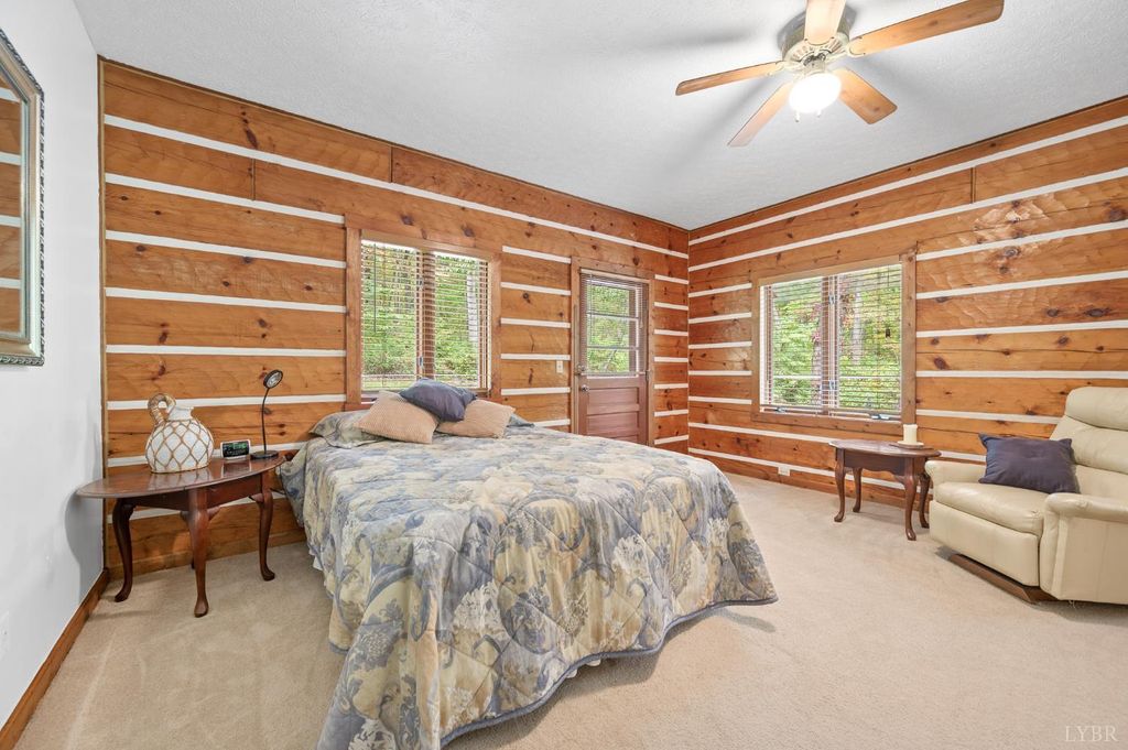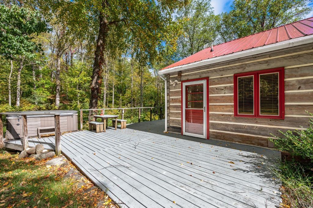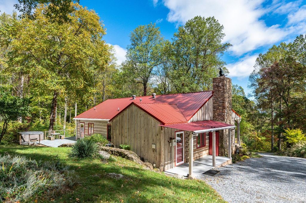 You may never again find an opportunity like this. Nestled on 12.68 acres along the east slope of Sharp Mountain, just below the vast Thomas Jefferson National Forest, this exquisite Old Virginia log home offers unmatched privacy and natural beauty. Enjoy 12' vaulted ceilings, skylights in the great room, a stunning floor-to-ceiling stone fireplace with woodstove insert, and FIOS internet. The home features 3 bedrooms, 2 baths, granite countertops, a brand-new metal roof, and a spacious 744 sq ft deck with top-tier therapeutic hot tub. A 3-car detached garage, pure well water, and professional landscaping exceeding $10K complete the property. Trails lead to a scenic knoll, a massive Table Rock,'' and a hunting cabin on a year-round creek. With mild seasons, endless firewood, and an efficient 16 SEER heat pump, this mountain retreat offers the perfect blend of comfort, self-sufficiency, and serenity.