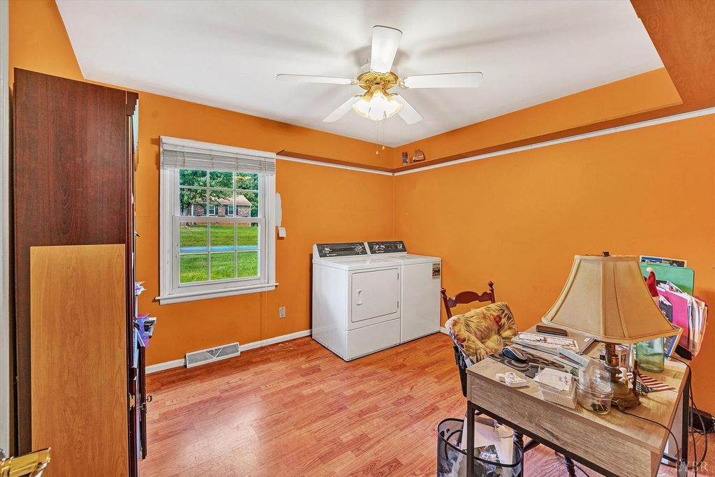 Solid brick ranch with full walkout basement offering nearly 3,000 sq. ft. of living space on a half-acre lot. The main level features three bedrooms, 2 full baths, an open living, kitchen, and vaulted sunroom, plus a formal dining room with fireplace. The basement includes a large family room with fireplace, a bedroom, kitchenette with eat-in area, full bathroom, and a one-car garage, ideal for in-law or apartment use. Features include updated thermal windows, built-in wired generator, laminate and tile flooring, and a fenced yard with separate deck.Heat Pump and A/C new in 2023. Well-maintained by the same owner for over 50 years, this solid home has great bones! Priced to sell and ready for its next owner!