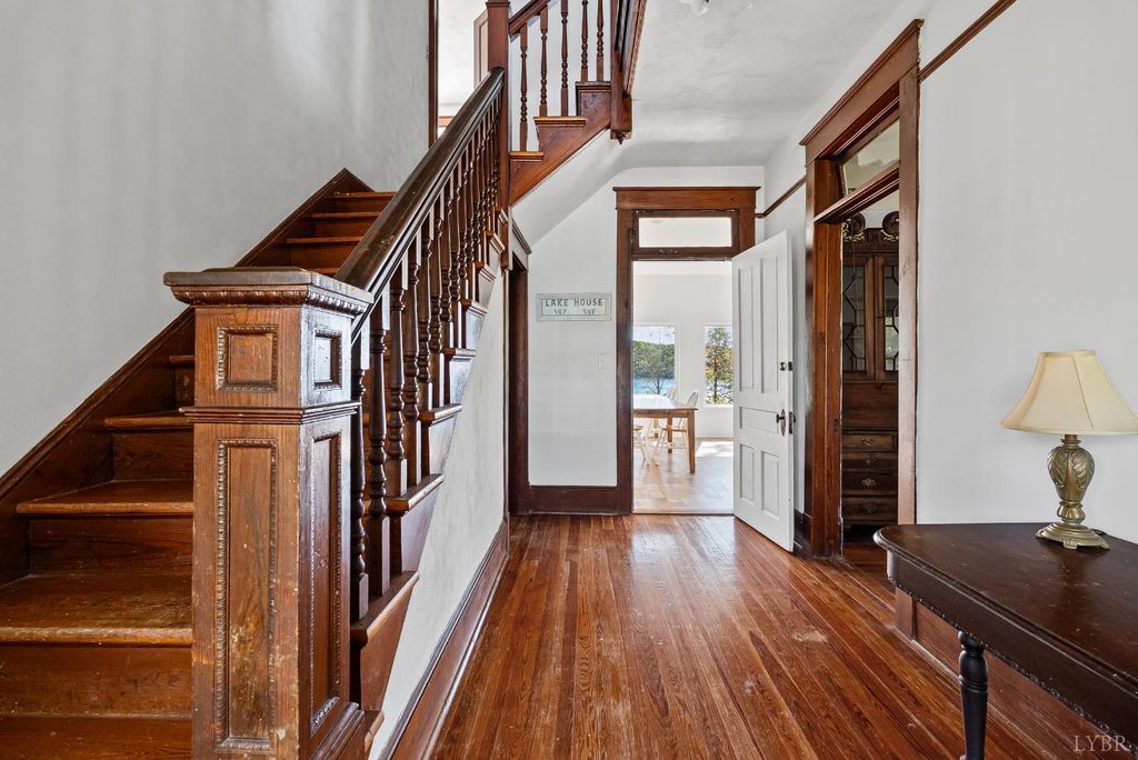 RARE Opportunity! Step into the past as you approach the full front porch of this historical 1900's or older farmhouse on the water! The naturally finished woodwork and stairs, beautiful heart of pine floors and original transom windows over the doors in the foyer welcome you. Two large rooms flank the foyer, your living room and a main level bedroom or a dating parlor. Expect to be amazed by the spacious great room/Sunroom with big windows and an incredible view of the park like yard that leads to one of the best spots on Leesville Lake. The kitchen and full bath complete the first floor. Upstairs there are three spacious bedrooms, a full bath, and a second family room appropriately nicknamed The Treehouse because of the view! This quiet lake retreat is accessible from Runaway Bay, but not part of Runaway Bay (no fees or rules). The easily walkable lot gently slopes down to Leesville Lake which is perfect for swimming, kayaking, paddleboats and fishing! A real GEM! $549,900
