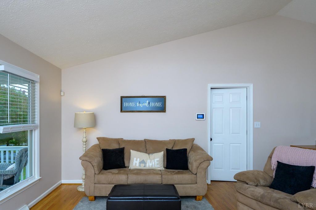 Beautiful 3BR Home with Mountain Views and Sunroom! Welcome home to this well-maintained property just 10 minutes from Liberty University! The large covered front porch opens to a bright living area with refinished hardwood floors throughout. The spacious living room features vaulted ceilings and leads to a stunning sunroom with peaceful mountain views. All bedrooms are generously sized, including a primary suite with a walk-in closet and private bath. The full basement includes a finished full bath and offers excellent potential for additional living space or a fourth bedroom. Outside, enjoy a well-kept lawn and a convenient storage shed. This home is truly move-in ready and offers space, comfort, and beautiful views!