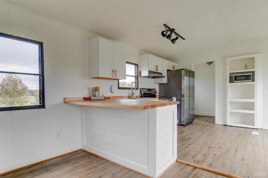 This home, situated in the picturesque Virginia countryside, is located on a wide-open 1.02 acre lot. High-speed cable internet is available from Mecklenburg Electric Cooperative. The home's open floor plan blends the dining, kitchen, and living spaces into an inviting common room. The lovely kitchen features butcher block countertops with beautiful appliances. The laundry room is conveniently located on the main floor adjacent to the kitchen. The primary bedroom is attached to a beautifully tiled full bath. Further attributes include a front porch, a double car garage, extra parking space on the concrete driveway, and a work shed right off the driveway. The unenclosed backyard can be viewed from the back entrance. Schedule a showing today!