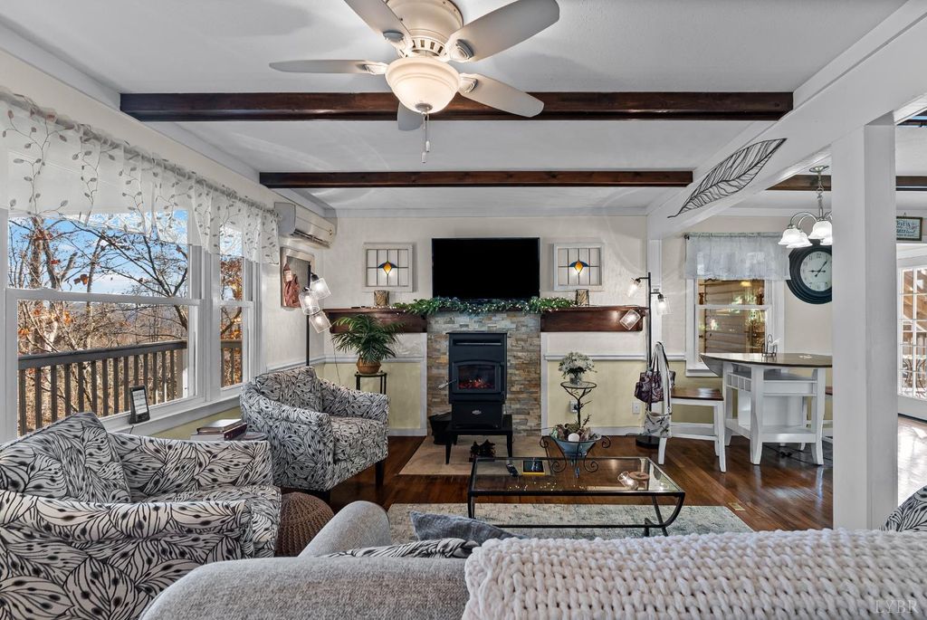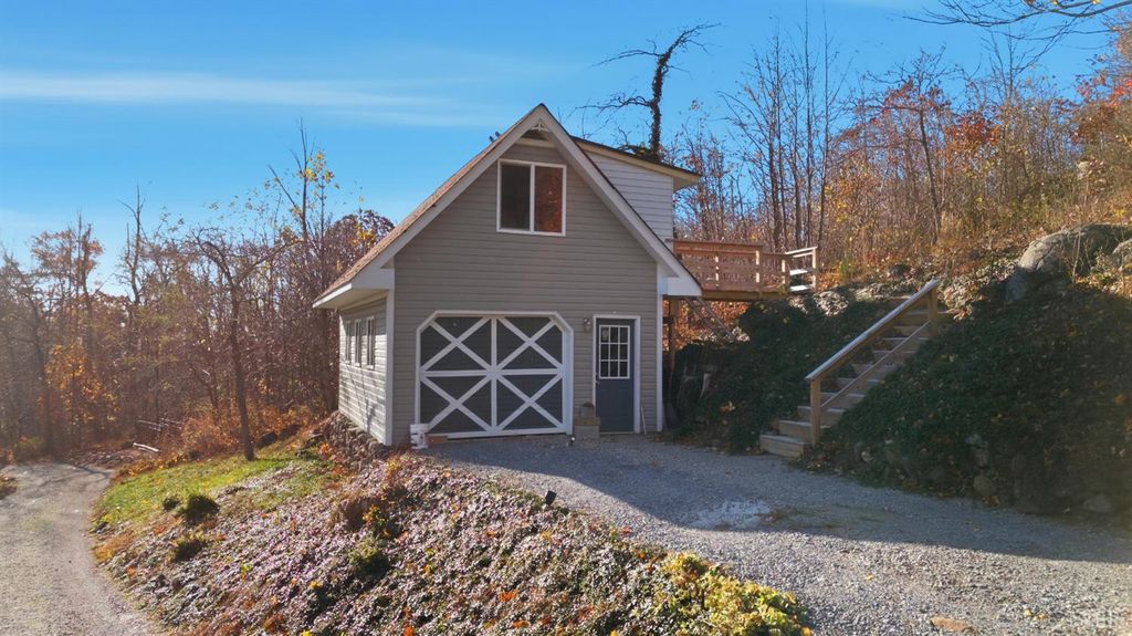 Rare opportunity to find a home with privacy and views like this one. The home sits on a five acre parcel and comes with a separate parcel for the remainder of the acreage. Walk into the terrace level of the home where you'll find a basement apartment with a full bath and office/bedroom. Upstairs on the main level is an open floor plan flowing from the kitchen to living room and your perfect wrap around deck and screened in porch. Completing the main level is your primary en-suite with walk -in closet and a full bath with soaking tub and walk-in shower. Upstairs are two bedrooms with a shared half bath for convenience and one bedroom has a balcony for overlooking the valley below sharp top. Outside is a stream running along the property that you can hear from your outdoor entertaining space. No need to worry about losing power as a whole house generator was recently installed! Detached one car garage perfect for a work shop with plenty of extra storage above.