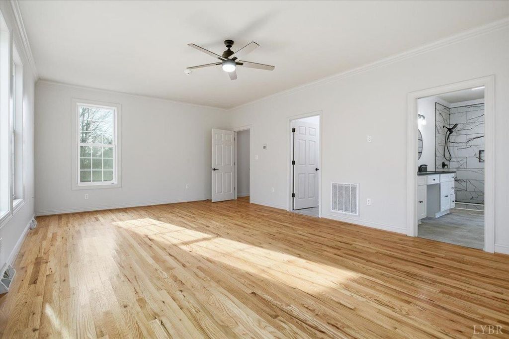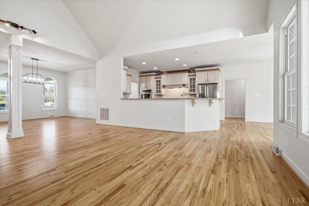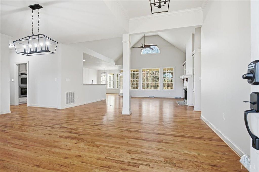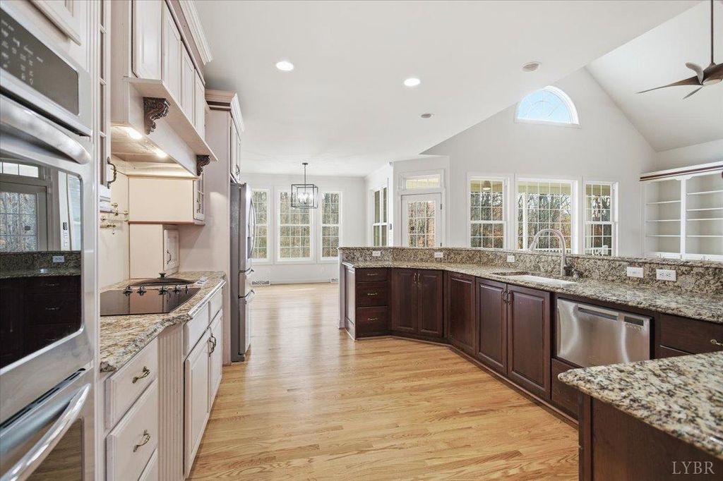 Gleaming hardwoods welcome you into this stunning one-level living home featuring an open floor plan with cathedral ceilings and abundant natural light. The chef's kitchen impresses with double ovens, cooktop with built-in grill and steamer, pot filler, and industrial range hood. Enjoy a newly renovated primary suite with a spa-like bath and huge walk-in closet. The daylight basement offers more living/entertaining space, and potential future space. Stay fit in your indoor swim spa! Outdoor living with a slate-tiled covered front porch with sweeping pastoral and mountain views, private two-level back covered deck/patio. Fenced acreage would allow for pets or horses. All this - just minutes to Liberty University with Campbell County Taxes! Schedule your appointment today!