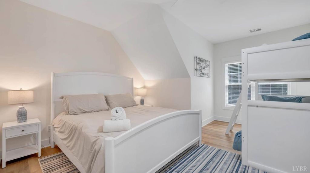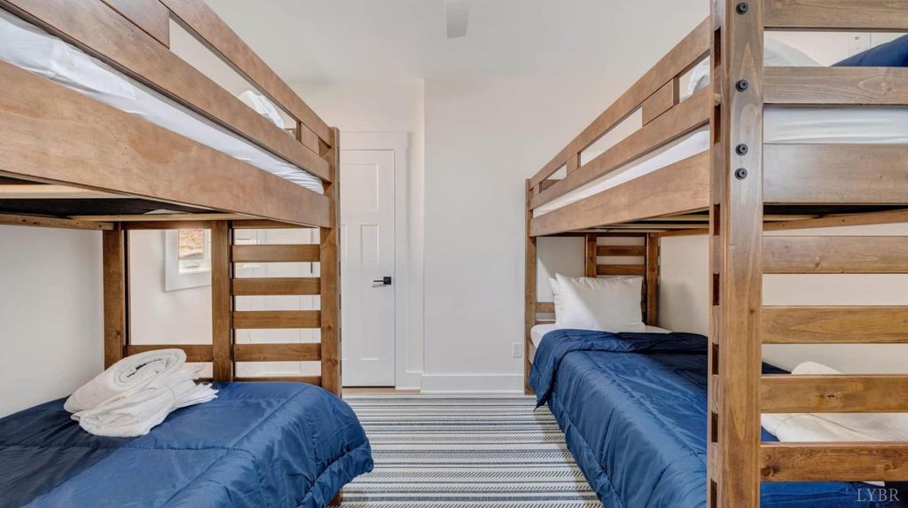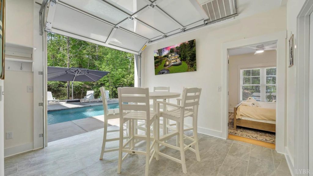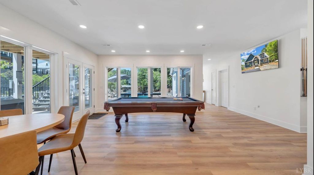 Experience waterfront luxury at its finest in this new Smith Mountain Lake home, perfectly positioned on a flat lot with crystal-clear water and panoramic views. Designed in timeless craftsman style, it offers 9 bedrooms and 6 baths supported by an 8-bedroom septic system. The open-concept interior features vaulted shiplap ceilings, a gourmet kitchen with farmhouse sink and custom hood, and seamless flow to a covered porch ideal for dining and entertaining. Enjoy full tiled showers, a spa-like primary bath, and expansive outdoor living with covered porches, stone fireplace, TV, and cedar finishes. A heated saltwater pool with Omni Smart controls, an 8-person hot tub, and a poolside recreation room with wet bar enhance the resort-style experience. The large covered dock includes an upper deck and enclosed bar area for lakeside gatherings. With smart home features and projected rental income over $350,000 annually, this exceptional property blends elegance and unparalleled living.