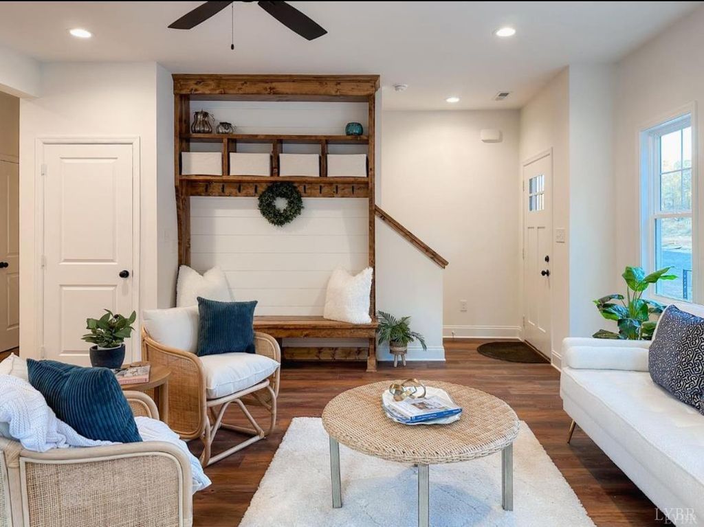 I'm Designed with Character, Crafted with Care, Surrounded by Nature...Welcome to the Neighborhood...Creekstone!!! This newly built 3 bed, 2.5 bath end unit townhome perfectly balances modern farmhouse charm with coastal-inspired design. From the shiplap walls & natural wood accents to black hardware and custom built-ins, every detail has been thoughtfully chosen. The open floor plan flows effortlessly into a stylish kitchen and cozy living space, while the mudroom adds everyday function with a polished touch. This low-maintenance home offers gorgeous LVP flooring throughout the main level, stained stair treads, quartz countertops, walk in closet & double vanity adorn the primary bath! A large covered rear porch overlooks privacy and peaceful views with easy access to the Heritage Park nature trails! This brand new community is conveniently located minutes from Liberty University, CVCC, Shopping, Dining, Medical, Downtown, & More! Similar to photos.