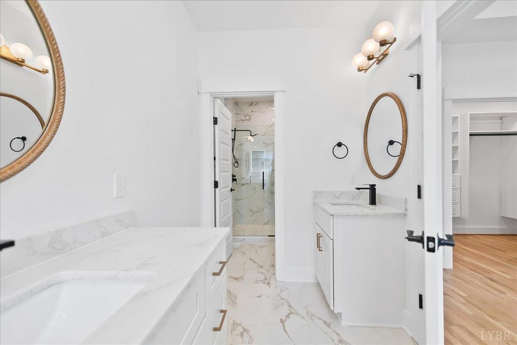 This new luxury home in Walkers Crossing (Forest ) is perfectly situated on a 1.4-acre cul-de-sac lot with an ideal modern design and premium finishes. The chef-style kitchen offers high-end appliances, KitchenAid double ovens, gas cooktop, pot filler, quartz countertops/backsplash, and a large 8-ft island with bar. The main-level primary suite features dual vanities, large walk-in tile shower, and soaking tub. Enjoy hardwood floors on main and upper levels, a formal dining room with wainscoting and box-beamed ceiling, and a bright open family room with fireplace. 5 bedrooms with hardwoods and 3.5 tile baths, inviting double-entry front door, covered front porch and covered back porch overlooking private backyard. Walk-out unfinished basement with 7 full size windows plus doors. It is ideal for future expansion or storage which would add another 1700 sq ft. Move in-ready this desirable Forest location is convenient to desirable schools, & shopping.