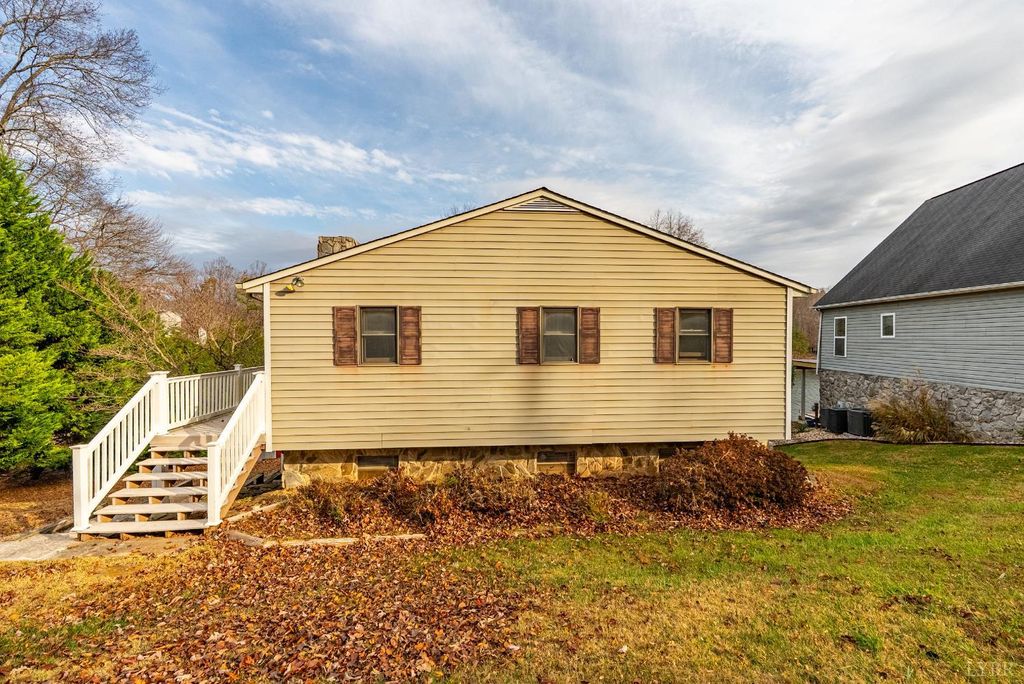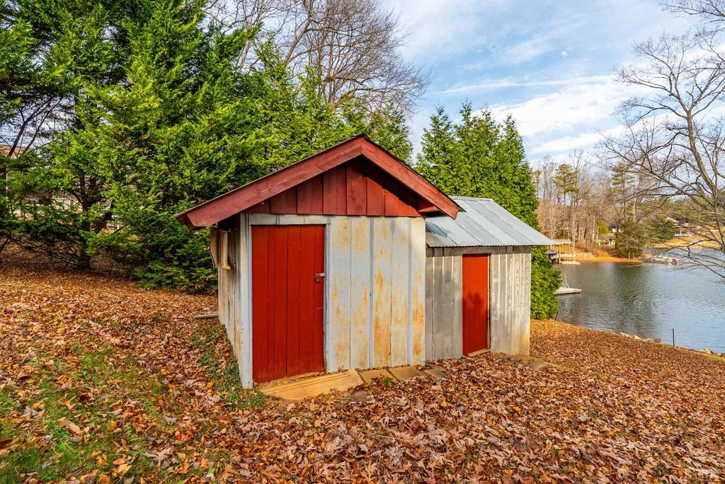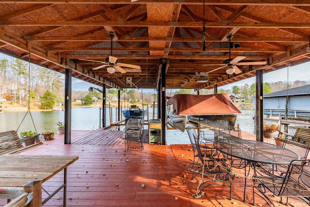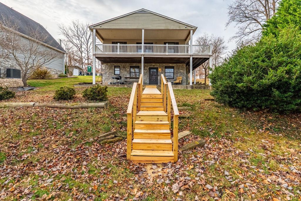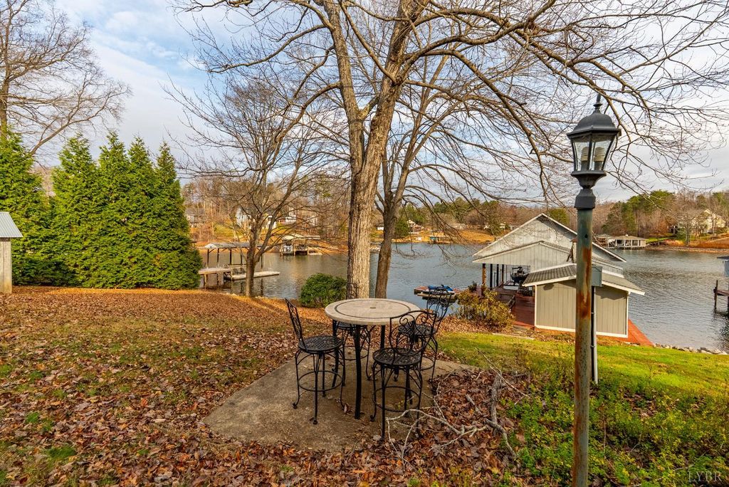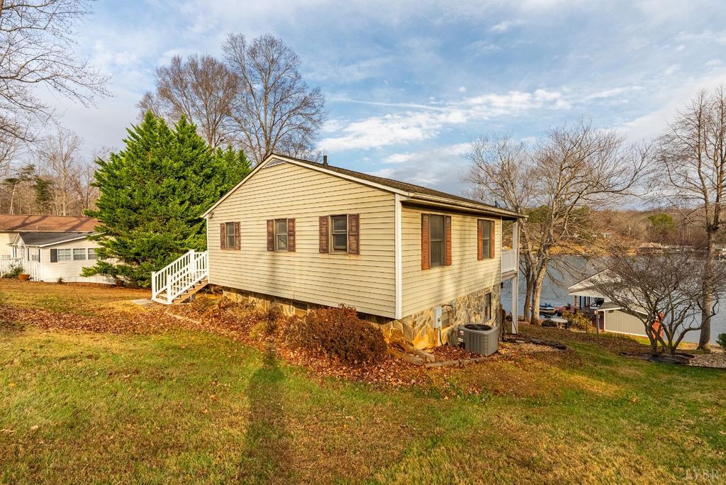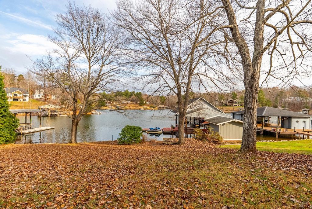The Lake House! This waterfront home sits on a double lot inside of Witcher Creek just minutes away from Mitchell's Point Marina. The walkout lower level features a large, eat-in kitchen and living room for gatherings. A spiral staircase leads upstairs to two bedrooms, a large bonus room, and a second full bathroom. A full length, covered balcony overlooks the water while a concrete patio below offers additional covered seating. A short, gently sloping walk to the water ends at a large covered dock. The dock features lots of covered seating, two covered slips with boat lifts and an attached, floating dock. There is also a built in storage shed with water pump and a full attic for more storage or high dives. New well pump 2025. HVAC 2023. This is a place to get away but also to come together. Dreaming of a place to call your own at Smith Mountain Lake? Schedule your showing today!