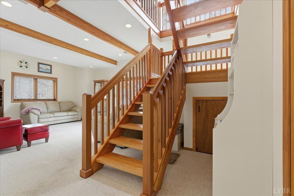 This stunning, custom-built Lindal Cedar post-&-beam home is a unique lakefront find in an area where properties like this rarely come on the market. With wide water & sunset views, an incredible location within eyesight of Bridgewater Plaza, & coming to the market for the first time, it offers unmatched opportunity. Featuring 3 bedrooms, 3 full baths, a detached large garage, a storage shed, & an incredible dock with a party deck, it's designed for comfort, relaxation, & entertaining. Enjoy spacious decks next to mature beechwood & oak trees, a large patio perfect for gatherings, & your own natural sandy beach with a gentle pathway to the dock. Short-term rentals are allowed, providing flexibility for personal use or investment potential. Amenities like tennis, a clubhouse, & a pool are all within walking distance, with a wide & level public street nearby perfect for strolls. Conveniently located near Bridgewater Plaza by water & Food Lion Plaza by land.