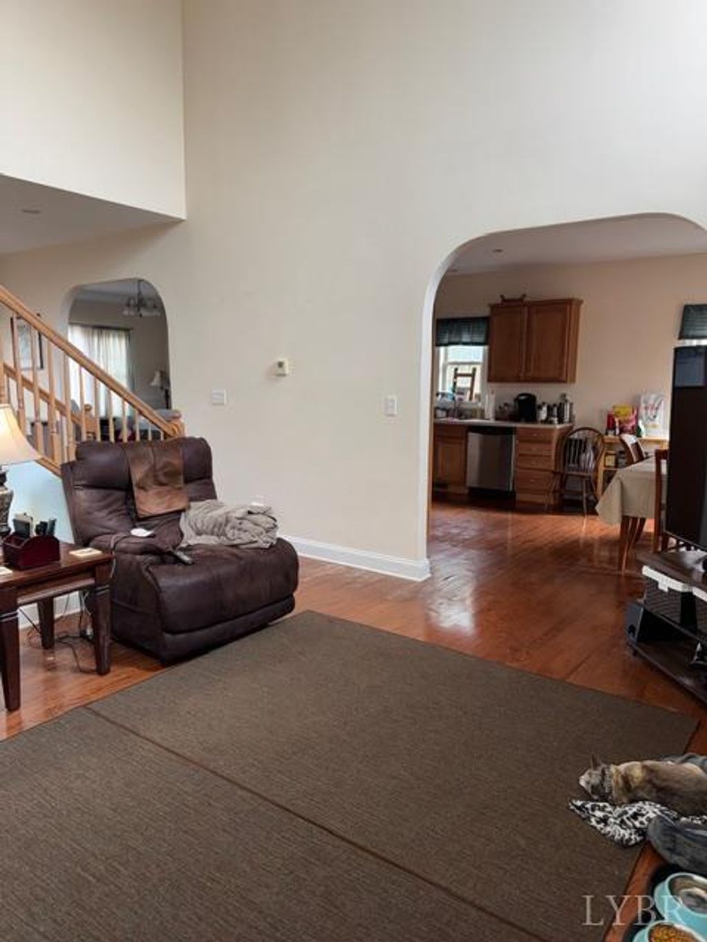 Beautiful 4 Bedroom 2.5 Bath Two Story on 1.46 Acres. Black Top Drive. Main Level Master Bedroom with whirlpool tub and shower. Walk-in closet. Dining Room has crown molding and chair rail molding. 3 bedrooms upstairs, large kitchen with lots of cabinets. Stove, Dishwasher, microwave and refrigerator Stay. 2 car garage, huge great room with rock fireplace and gas logs.1374 sq ft unfinished with rough in Bath for future expansion. Covered Porch on the back.