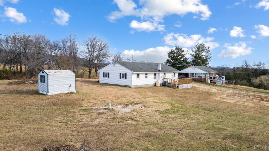 Sought after North Bedford County location with Peaks of Otter Views. 1.04 Ac Lot. 1,364 sq ft, 3Bed, 1 BA (Room to add a 2nd). Eat in Kitchen/Dining Area with Gas fireplace, Lg Living Rm, Lg Utility Sorage Rm, Mud room, Pull Down Stair to Attic Storage. Replacement Windows throughout. New Paint and flooring throughout 11/2025. New heatpump System 2024 (WITT Mechanical), Due to formerly being on a shared well and Septic the old system was abandoned and new sysrems installed. New Well 4/2025 (Bedford Well Drilling), New Septic 11/2025 (Smith-Farris), New Dishwasher, New LG Washer/ Dryer Combo both in 2025. Range & Refrig included, Roof aprox 12ish years old. Covered Porch and 24x12 Deck as well as Outdoor Storage Building & Propane Tank. Agent is related to Sellers.