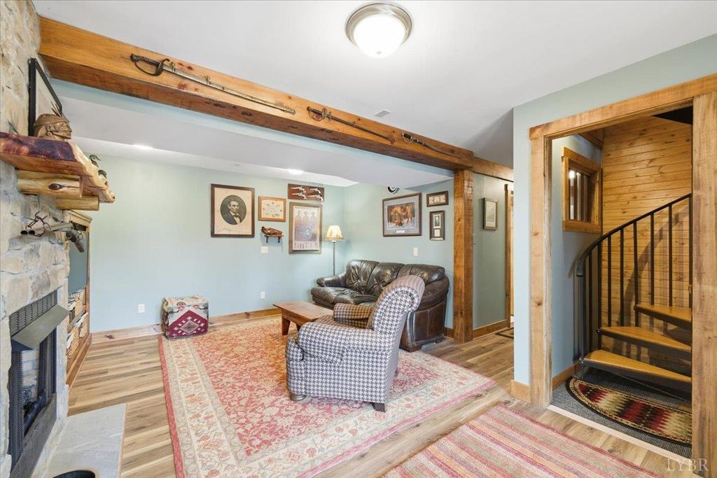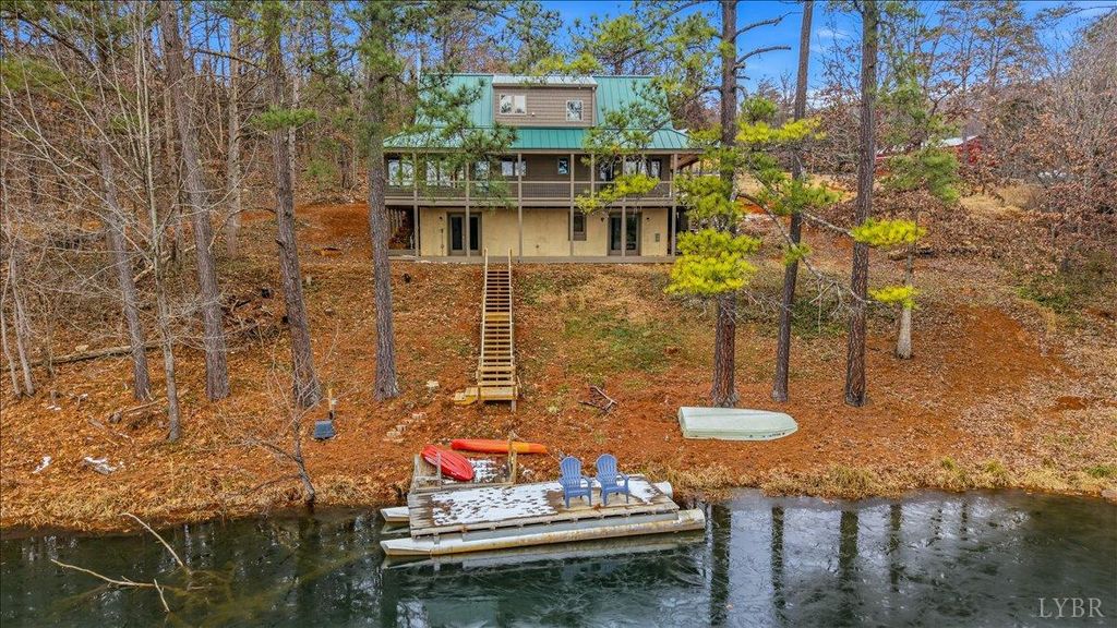 Set on nearly 50 private acres of open pastures & wooded land dotted with black walnut trees, overlooking a serene, stocked lake (large bass, crappie, catfish, and bluegill), this exceptional timber frame, luxury retreat offers refined living immersed in nature. Exposed beams & craftsmanship highlight the home's character. The residence features 3 bedrooms and 2.5 baths, including an loft-style bedroom. A newly redesigned kitchen anchors the home with stainless steel appliances & upscale finishes. The finished lower level provides a private bedroom with walk-out patio access, a warm & inviting living space, & a finished basement complete with a butler's pantry. A wraparound porch frames breathtaking lake & pasture views and delivers spectacular sunrises each morning. Extensive upgrades include new plumbing, electrical, gas lines, and more. The property offers walking and riding trails, pasture areas, a metal building/garage, garden spaces, and premier fishing and hunting.