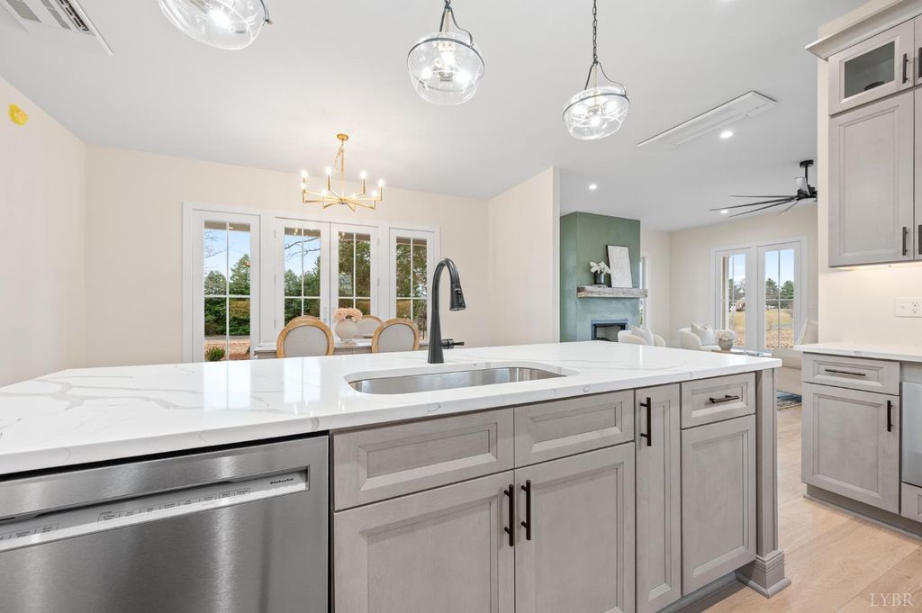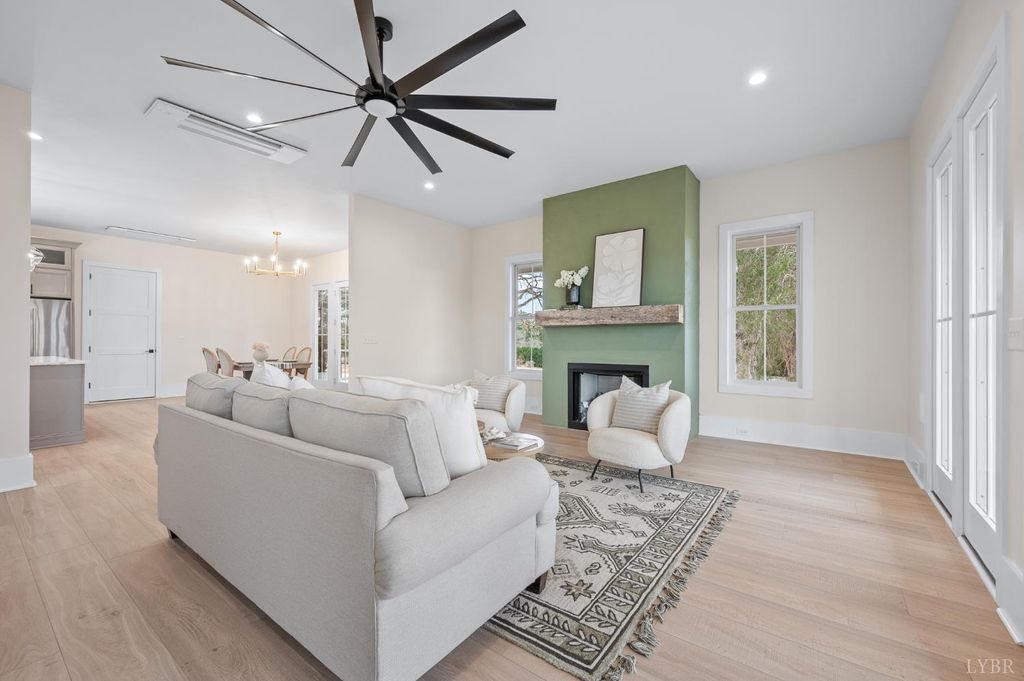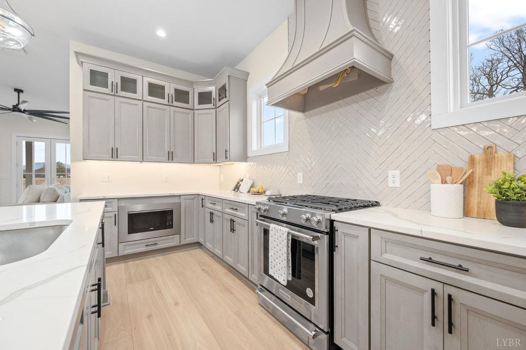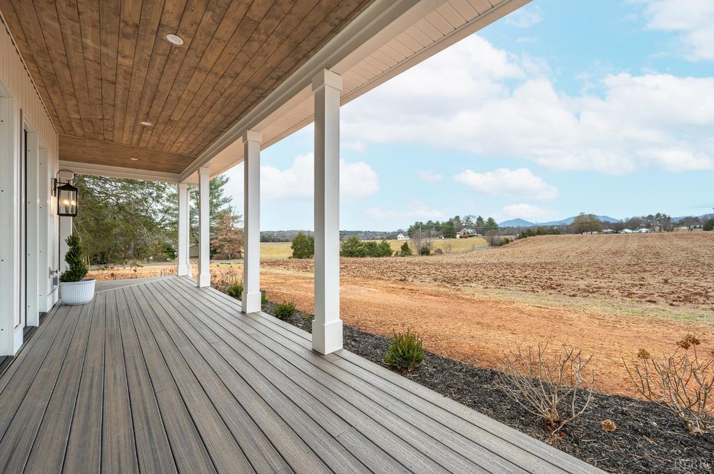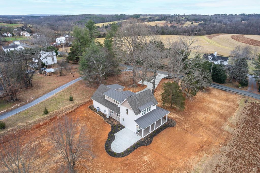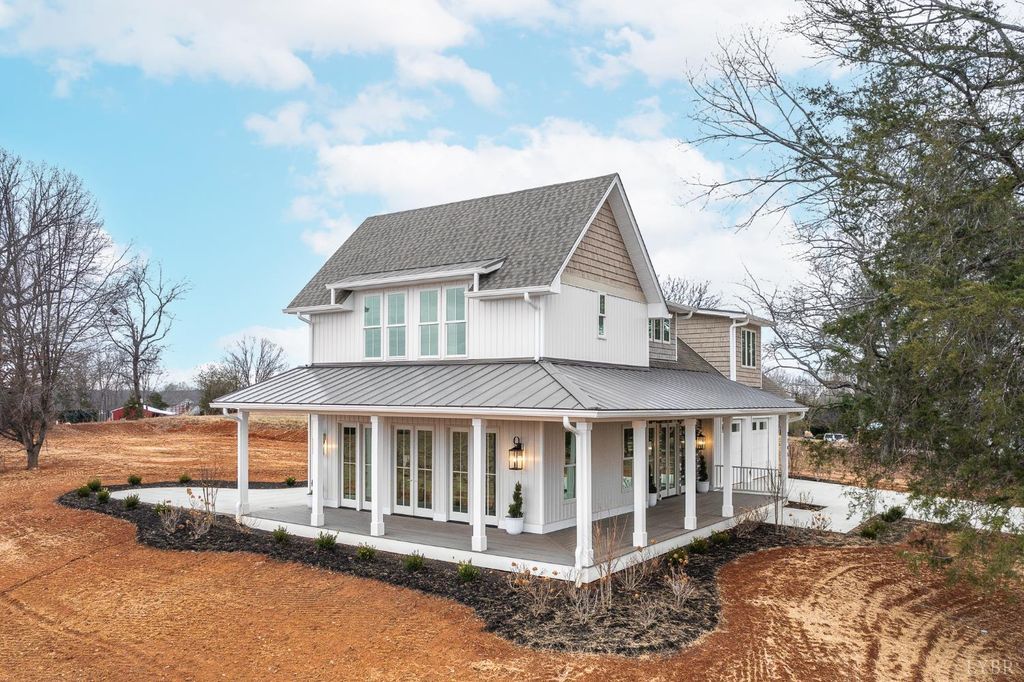 Welcome home to this beautifully crafted 3-bedroom, 2.5-bath retreat that blends timeless farmhouse charm with modern comfort. A welcoming wraparound porch sets the tone, perfect for morning coffee or evening sunsets overlooking peaceful countryside and Peaks of Otter views. Inside, light-filled open living spaces feature wide-plank floors, designer lighting, and a cozy fireplace that anchors the heart of the home. The kitchen offers custom cabinetry, a large island, stainless appliances, and thoughtful details ideal for everyday living and entertaining. Spacious bedrooms provide comfort and privacy, while the serene primary suite offers a relaxing escape. Set on an acre lot, it delivers the perfect balance of style, warmth, and tranquilityready for you to settle in and make it your own.