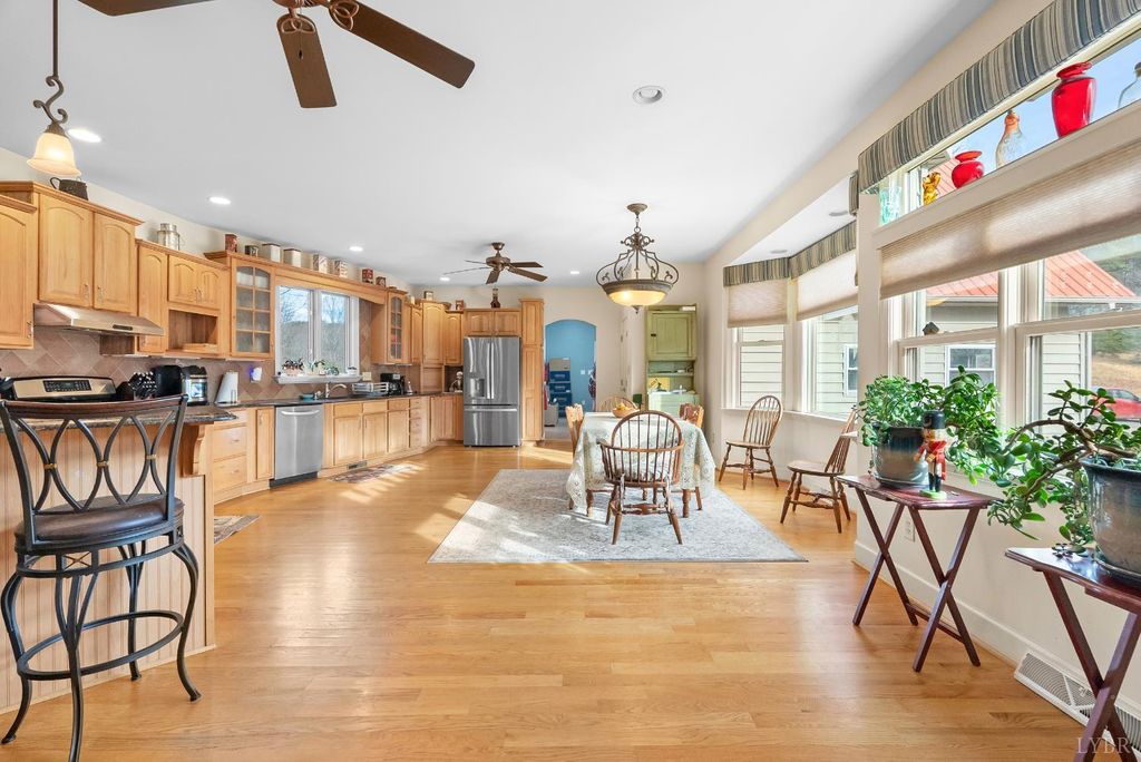 Set at the end of a private, state-maintained road, this custom-built 2006 estate offers 61 acres of remarkable landscape-rolling land, sweeping mountain views, historic train bridges, and a large creek that feeds the Roanoke River. The 3,219 sq ft home was thoughtfully positioned to take in the scenery from nearly every angle. Inside, the main-level great room anchors the home, flowing effortlessly into an enclosed back porch- a peaceful space to enjoy changing seasons and the natural sights of the land. The main-level primary suite provides a private retreat with a walk-in bath and closet. This home also delivers a two-car attached garage and Generac generator for additional peace of mind. The home offers a rare sense of seclusion and quiet, yet remains convenient to Bedford Memorial Hospital, Smith Mountain Lake, and Leesville Lake, allowing you to enjoy true privacy without sacrificing everyday access, recreation, or peace of mind.