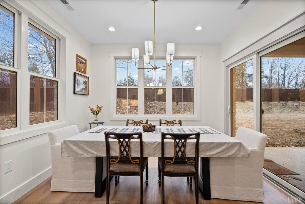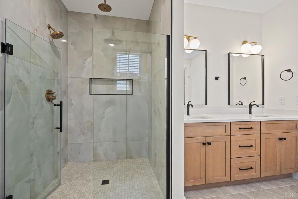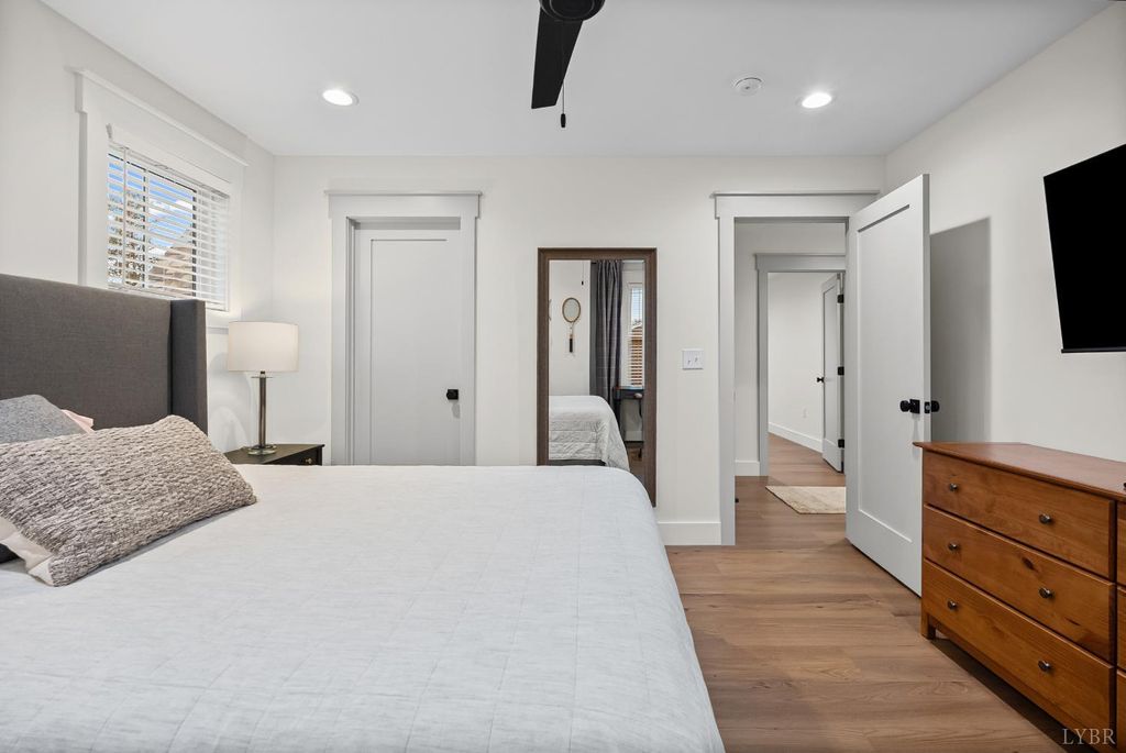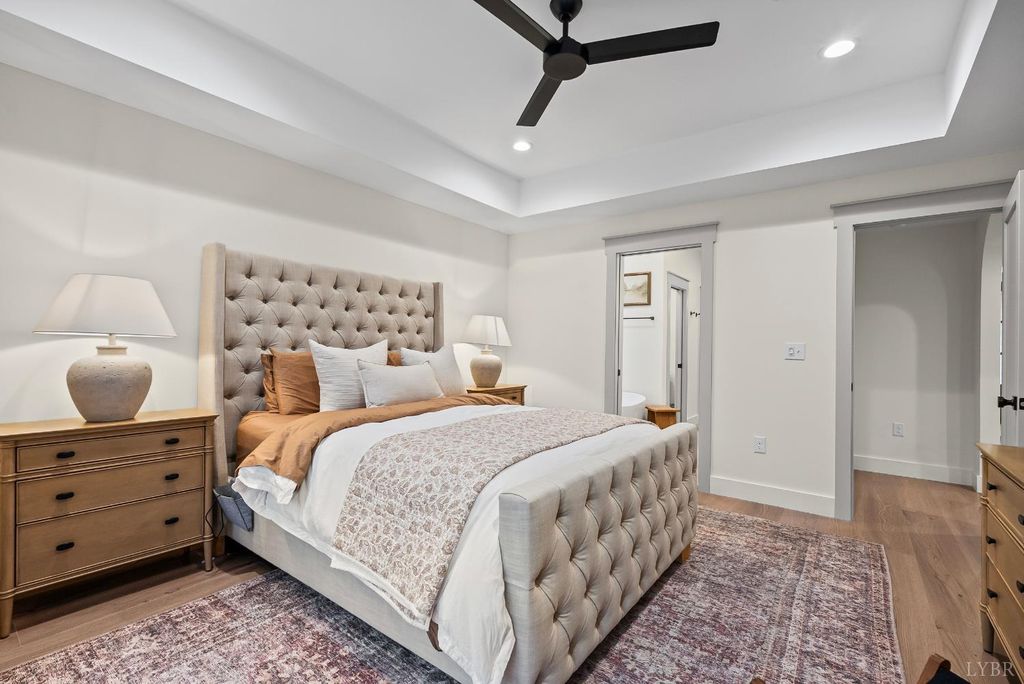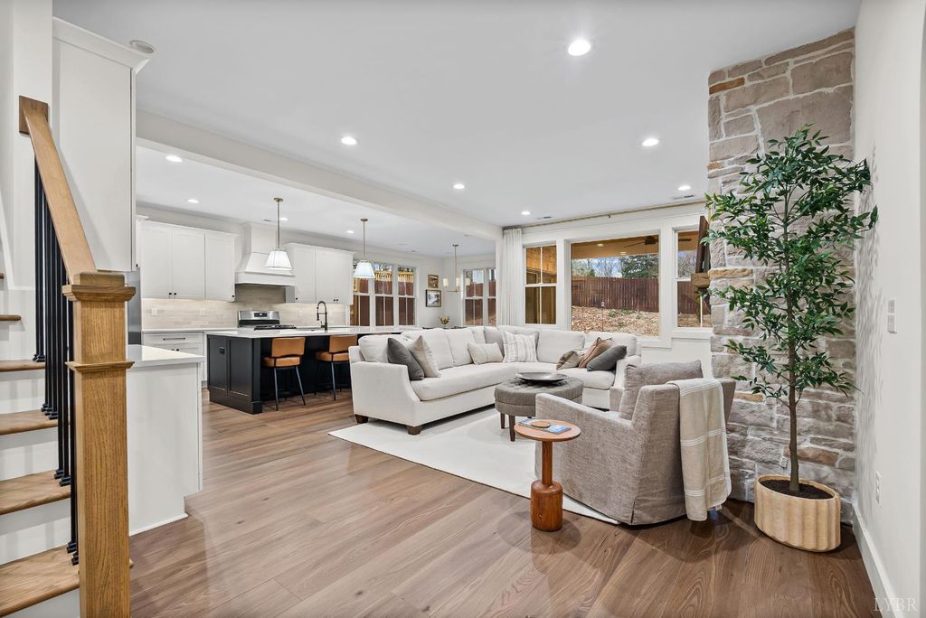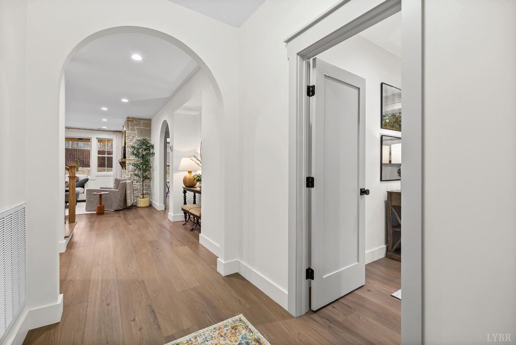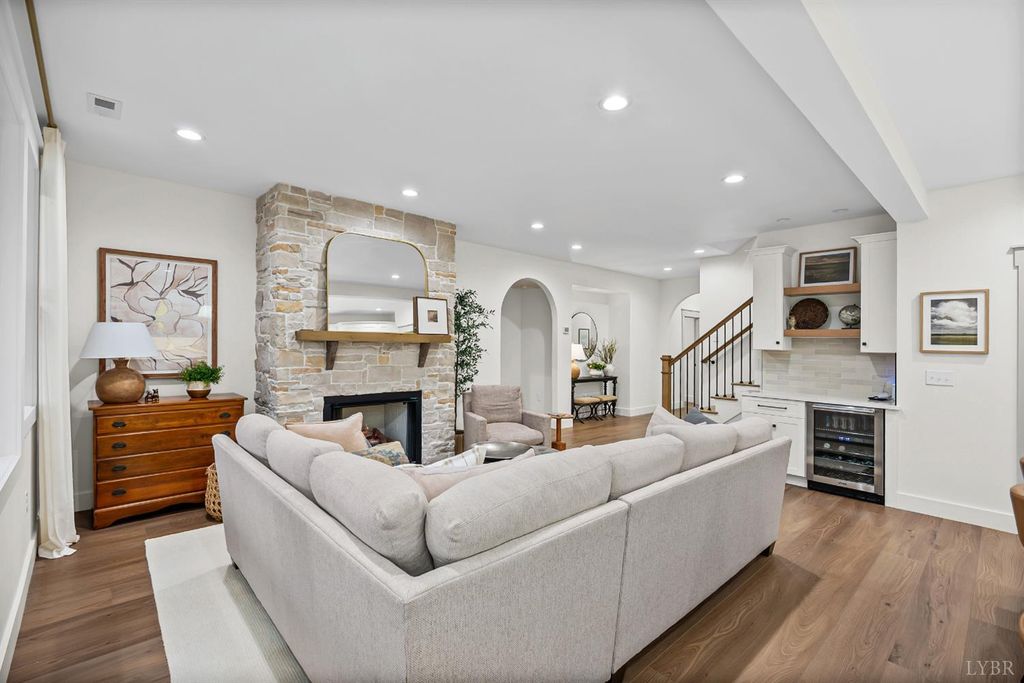 This newer-construction cottage blends refined craftsmanship with modern comfort in an established Lynchburg neighborhood. A welcoming foyer opens through beautiful arches into a light-filled living area with a striking stone fireplace, seamlessly connecting the kitchen and dining spaces. The kitchen features a center island, quartz countertops, abundant cabinetry, stainless steel appliances, a wet bar, and a walk-in pantry, with a laundry room between the kitchen and garage for added convenience and storage.The main-level primary suite is comprised of a spacious bedroom, large picture window, and spa-inspired bath with freestanding tub, walk-in shower, double vanity, water closet, and a custom walk-in closet. A second main-level bedroom serves an office. Upstairs, a sitting area, two bedrooms, two full baths, and a recreational room complete the interior. The fenced yard offers ample outdoor space, creating a home of thoughtful design!