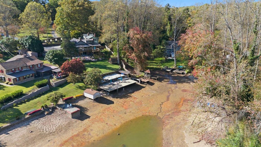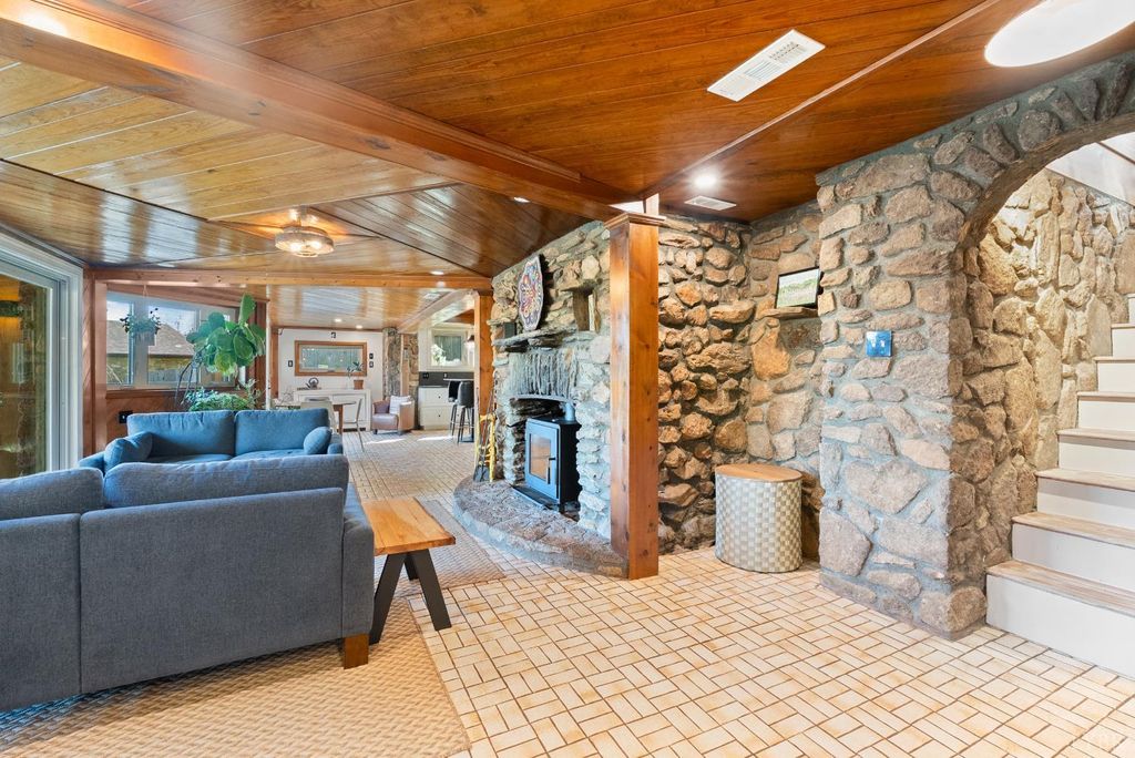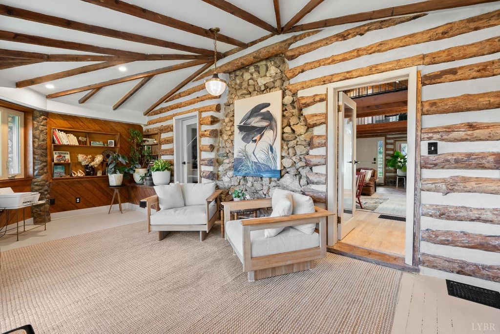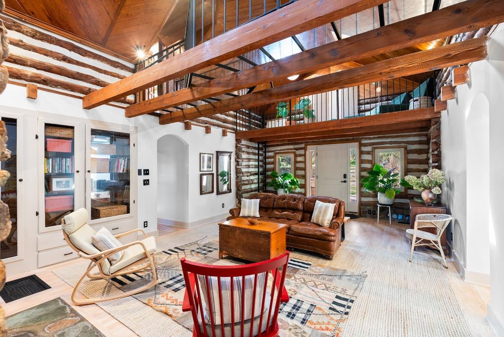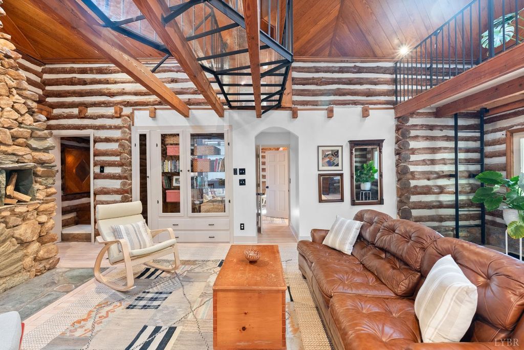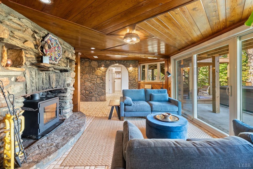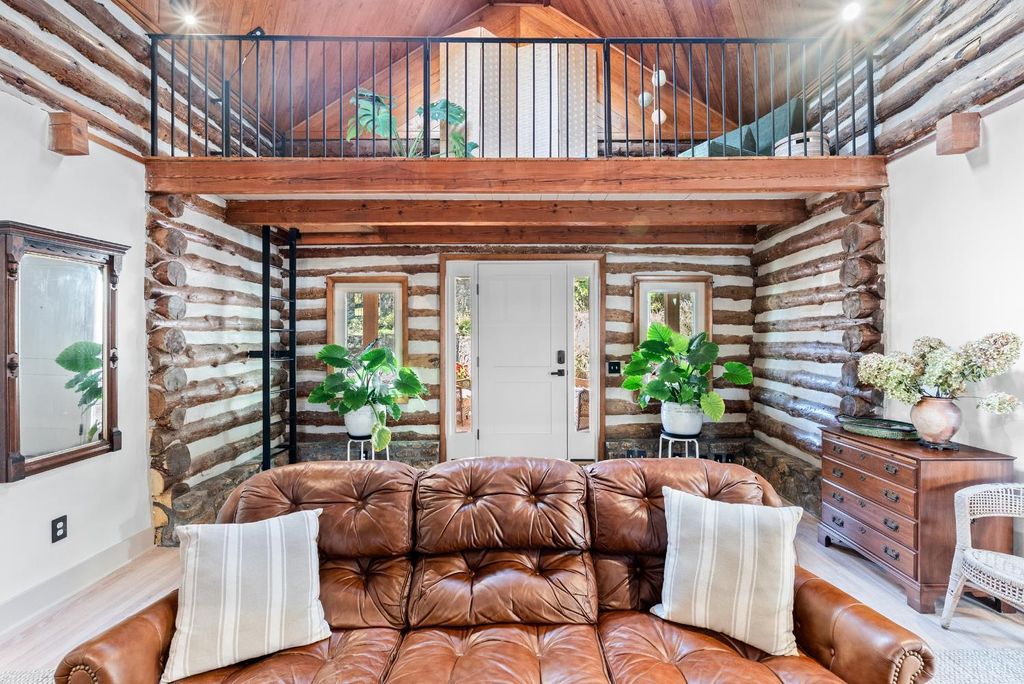 Open House - THIS SUNDAY 1-11-26! This Lakefront 1925 Log Home was a former Hunting Lodge & was one of the 1st Cabins on TIMBERLAKE!! This wonderful large home offers comfy castle vibes with enhancing massive original stone chimneys and fireplaces. Lake views abound throughout the property inside & out. This home has everything a modern lifestyle demands. 4 bedrooms (2 master suites), large kitchen opening onto a commanding patio with hot tub and multi-level deck. Look for a billiard ball embedded in the lower den wall! New baths, appliances, HVAC, roof, and windows. The soaring living room is spanned by an overhead plexiglass walkway. A flowing floor plan and extensive outdoor spaces make for wonderful entertaining. Outdoors you will find a deer-proof fenced yard, a flower-lined path to the large new dock, a shed, terraced gardens, fig trees & extensive pollinator plantings. Just look for the stone wall with custom iron gate just before CUL-DE-SAC. Property SOLD AS IS
