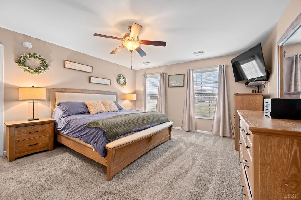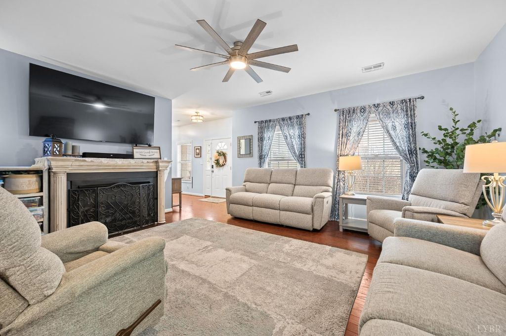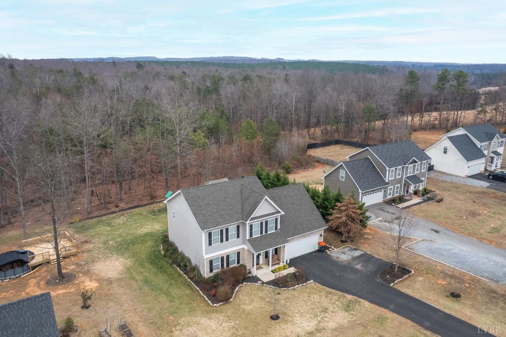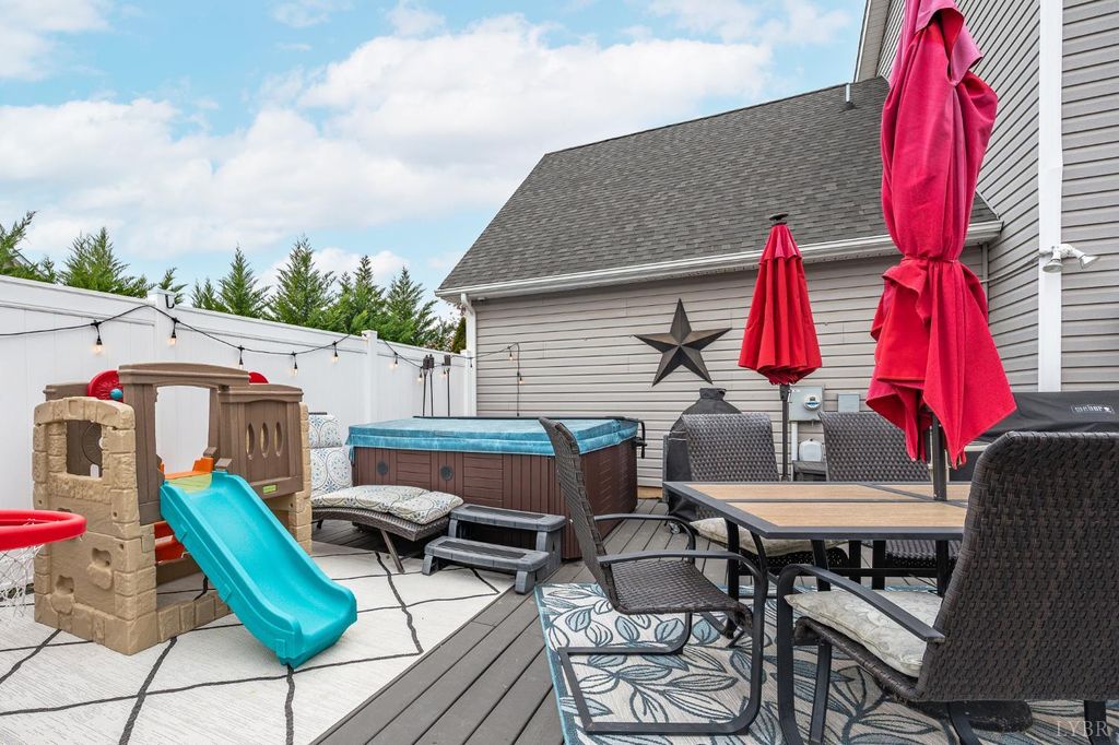 Welcome to Carriage Grove, this spacious 4 bedroom home offers the updates, convenience, and family-friendly lifestyle you've been searching for at a great value. The main level features hardwood floors, a generous living room, a dining room with a bay bump-out, and a kitchen with granite countertops, SS appliances, and gas range. Additional gas features include a tankless hot water heater and a gas fireplace hookup. An oversized garage and half bath complete the main level. Upstairs includes a large primary suite with walk-in closet and private bath, three additional bedrooms, a second full bath, and a dedicated laundry room. Step outside to a backyard retreat with over 800 sq ft of deck space ideal for relaxing or entertaining. A hot tub and pergola create a cozy outdoor living area, with a playset just steps away making it easy to relax and enjoy time outside. This home is just 10 minutes or less from the airport, Liberty University, restaurants, and more