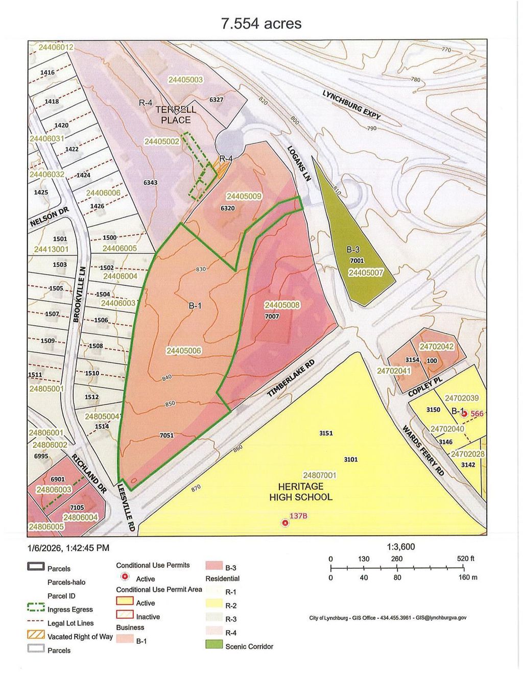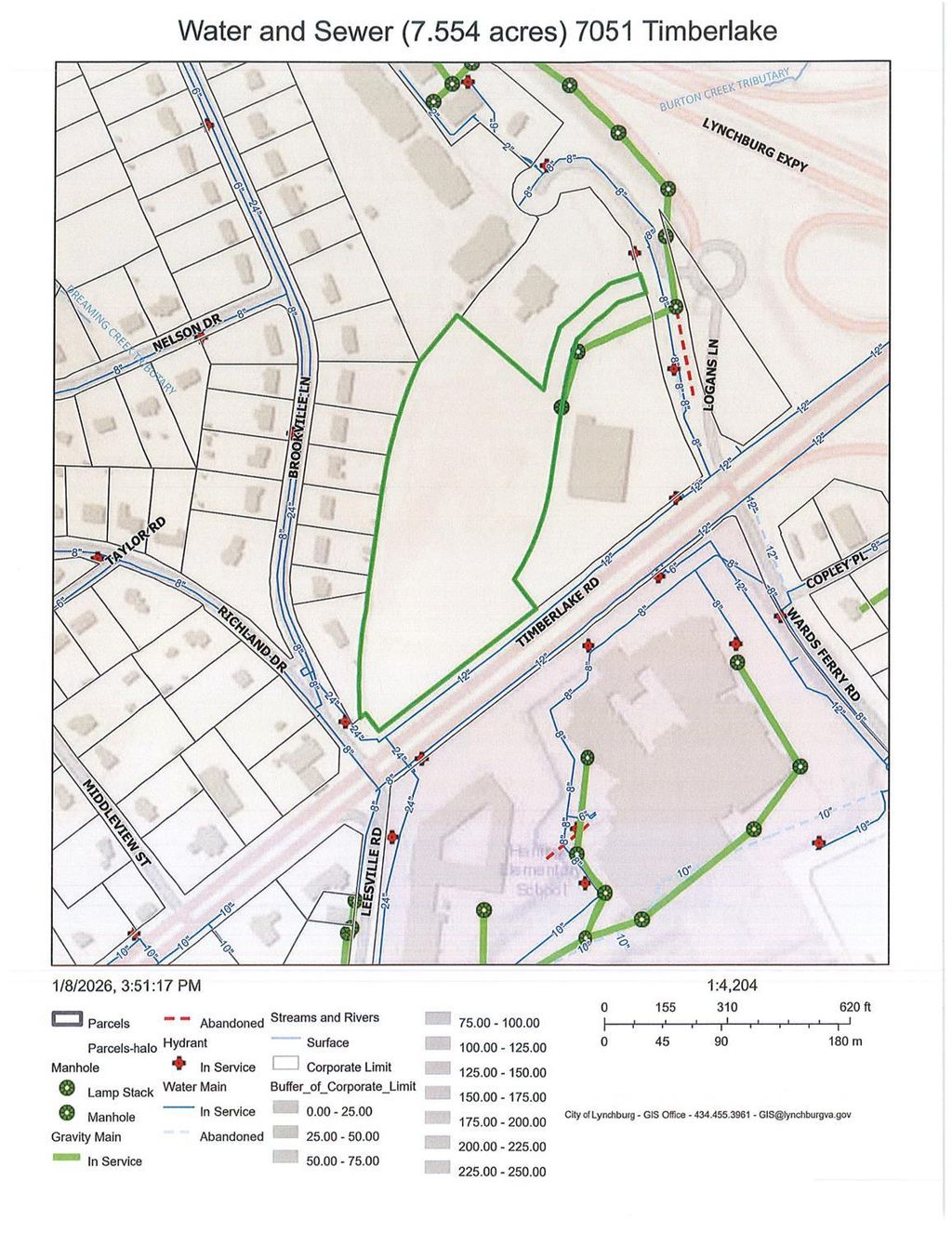 DeWitt Real Estate & Auctions is pleased to present 7051 Timberlake Rd. A prime 7.5+ acre tract prominently fronting Timberlake Rd; one of Lynchburg Virginia's major high-growth corridors. B1/B3 zoning, with almost 500ft of road frontage. Exceptional visibility and accessibility. Water and sewer available. A compelling development/investment opportunity just seconds from US-29/501 (Lynchburg expressway).