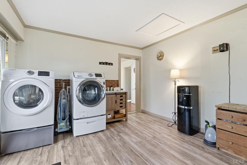 Welcome to this impeccably maintained 1959 Brick Ranch, offering the best of a Classical colonial Design with built-ins, two wood burning brick fireplaces, pocket doors and separated living and sleeping quarters. The inviting exterior features classic sturdy brick, while the interior has a spacious one level layout with 3 generous bedrooms and 2 full baths. Formal Dining and Living room. Room off kitchen could function as a den, office or extra bedroom. Large main level laundry/mud room. Experience the warmth of original hardwood and parquet flooring, a charming large picture window that floods the living room with natural light and a cozy nostalgic kitchen. Large deep closets. The 2 car detached carport along with a full basement and storage shed provide plenty of space for storage. Recents upgrades include heating and cooling unit 2023, Solar panels installed in 2021 and basement perimeter channeling, sump pump by Fortress Foundation in 2021, leaf guard and attic fan.
