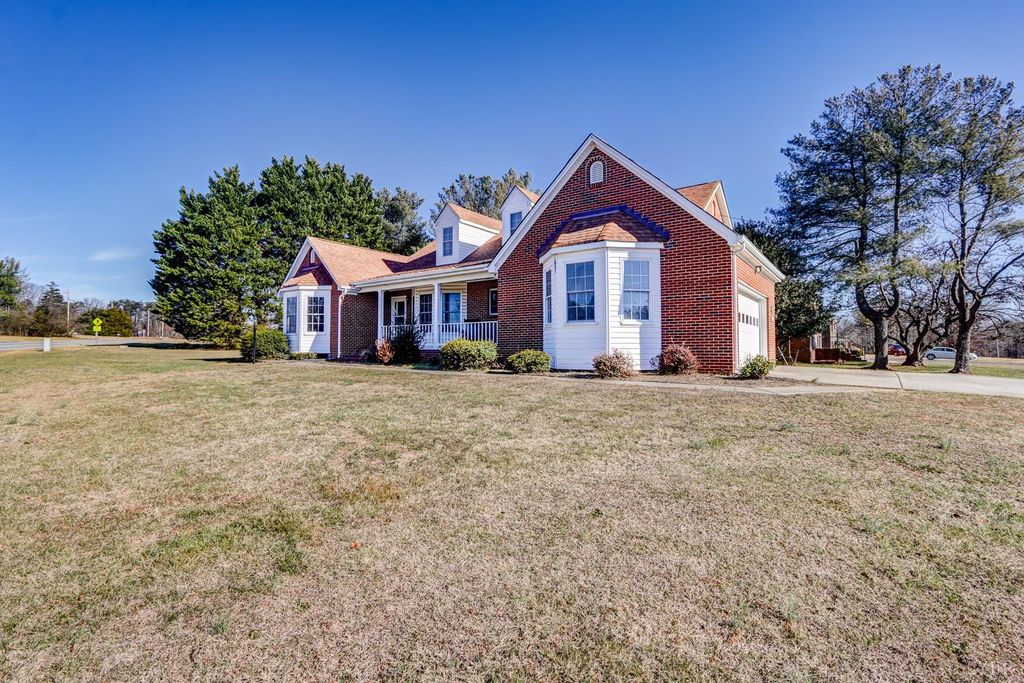 This 3 bed 2 bath brick cape cod has one level living with additional unfinished space upstairs for storage or expansion. Located a minute from 460, 3 minutes from Timberlake or 5 minutes to Liberty University makes this property centrally located with Campbell county taxes. This home touts a concrete drive, 2 car garage, new paint, en suite primary bath with large closets, main level laundry, fireplace with gas logs, tilt in vinyl windows, and a sunroom to overlook the fenced back yard. The roof was replaced approximately 8 years ago and the heat pump 5 years ago. This home is a must see!