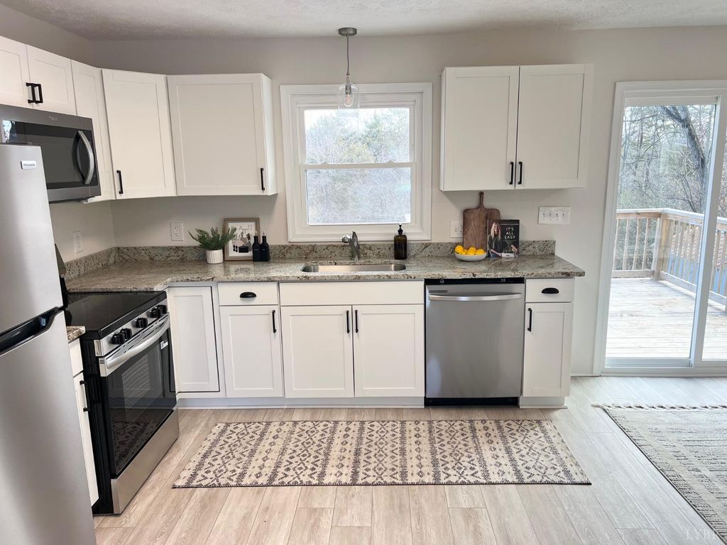 Beautifully updated 3 bedroom brick ranch situated on .46 acres in Campbell County. You will love the open floorplan of this charming home, with many updates that include a new roof, replacement windows, heat pump, all new fixtures, luxury vinyl plank flooring and so much more. The kitchen offers stunning granite countertops and stainless steel appliances. There is a large bathroom and 3 bedrooms all on the main level. The lower level is partially finished with a full bathroom. There is a nice deck off the dining room overlooking a spacious back yard with storage shed. Make your appointment today to see this lovely home!