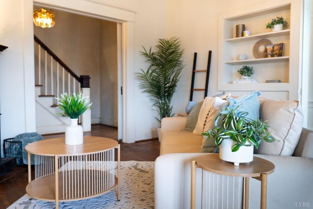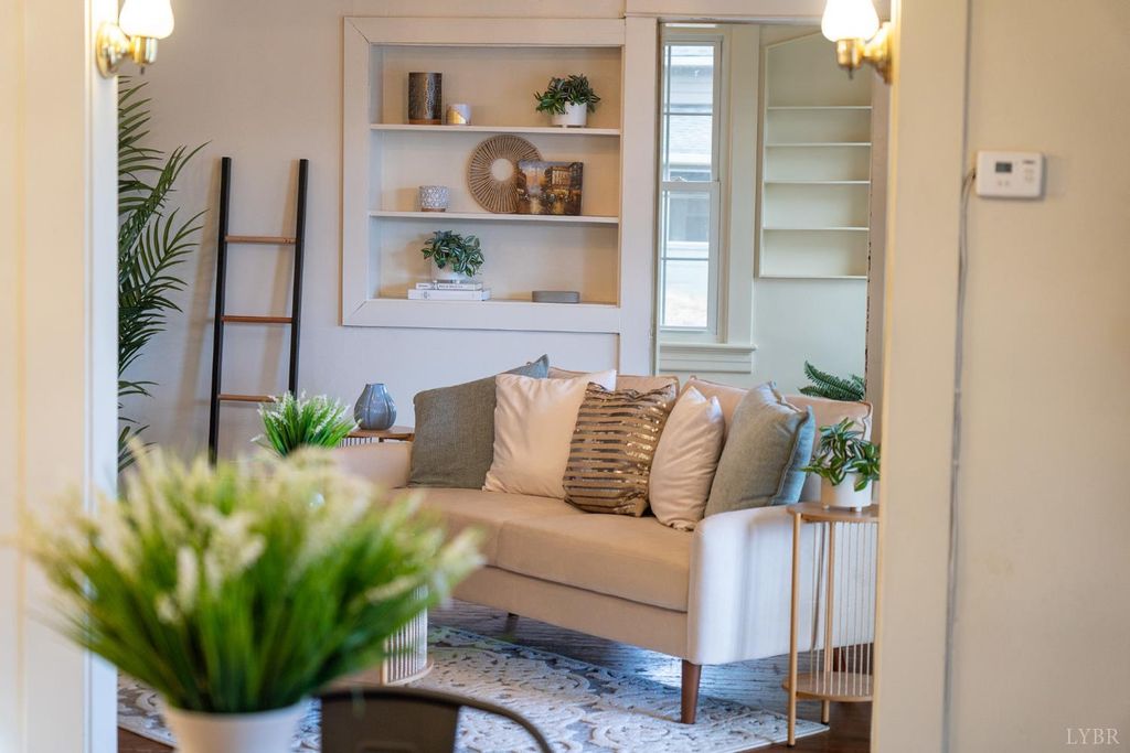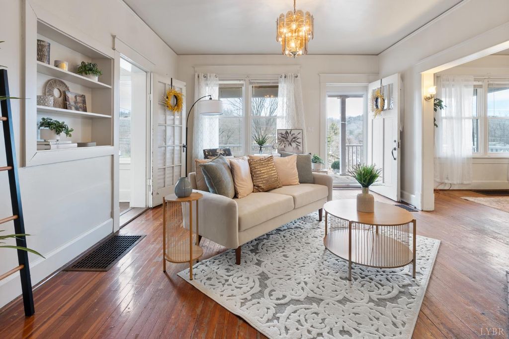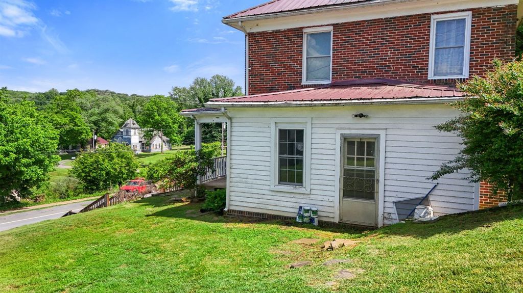 Perched on a hill overlooking Big Island, this classic 2-story brick charmer offers seasonal James River views with the Blue Ridge mountains as a stunning backdrop. A rocking chair porch welcomes you in. Inside: tall ceilings, hardwoods, timeless millwork, spacious living, dining, kitchen, adorable sunroom, and main-level primary with en-suite. Upstairs: 2 bedrooms, full bath, and office or 4th bedroom (no closet). Zoned C-2 with underground parking/storage. Ideal as a lovely primary home or short/mid-term rental for traveling Georgia Pacific Mill contractors or traveling nurses, convenient to 4 hospitals within 35 miles or less. Newer metal roof, HVAC, water heater, 200-amp service, and sump pump. Minutes to boat ramps, Parkway, Sedalia Center and 12 miles to Boonsboro Food Lion and 20 miles to the Town of Bedford. Right of way to the property from Sunset Hill for easy access to the property.