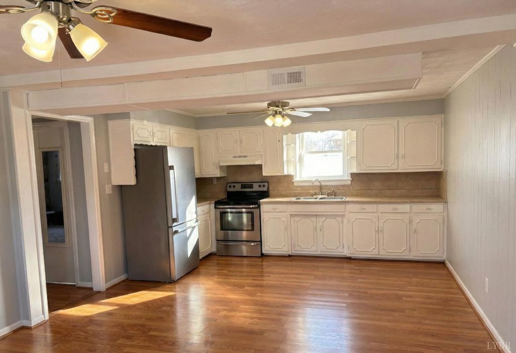 Great split-foyer home in the heart of Altavista. This 3-bedroom, 2-bath home offers a great layout with several key updates already completed. The main living area features beautiful hardwood floors and a large stone fireplace that serves as a natural focal point. You'll find plenty of room in the spacious kitchen, which is equipped with stainless appliances and an impressive amount of cabinet storage. Recent improvements provide peace of mind, including a new heat pump, replacement windows, fresh paint, and a new vanity in the hall bath. The property sits on a great lot with a rare, level backyardperfect for outdoor activities or gardening. Complete with a carport and a storage shed, this home is move-in ready and offers plenty of value.
