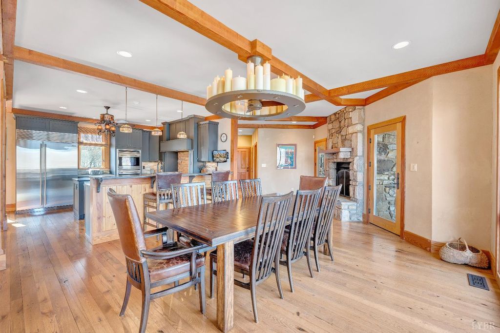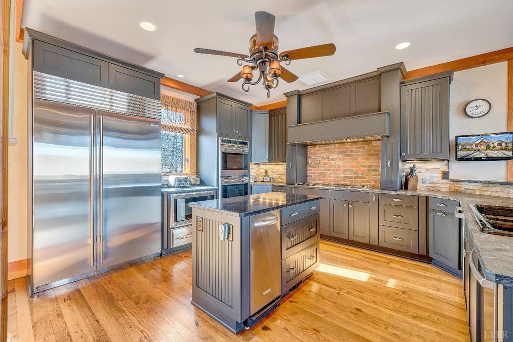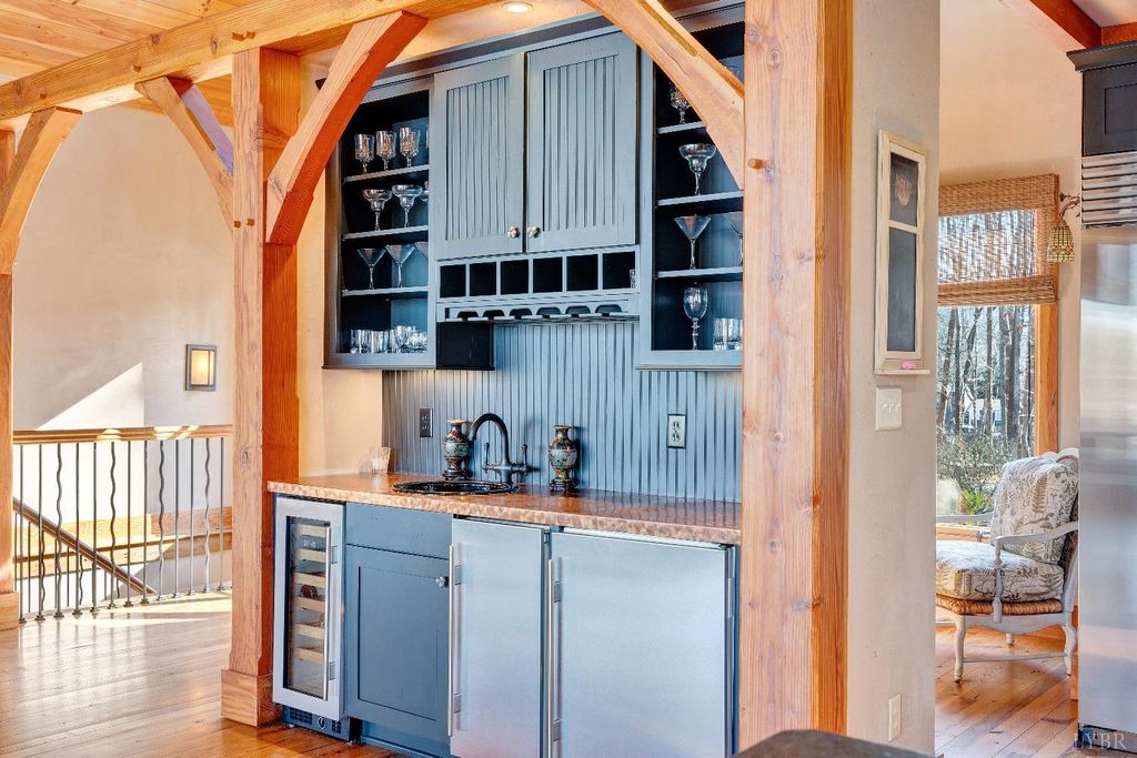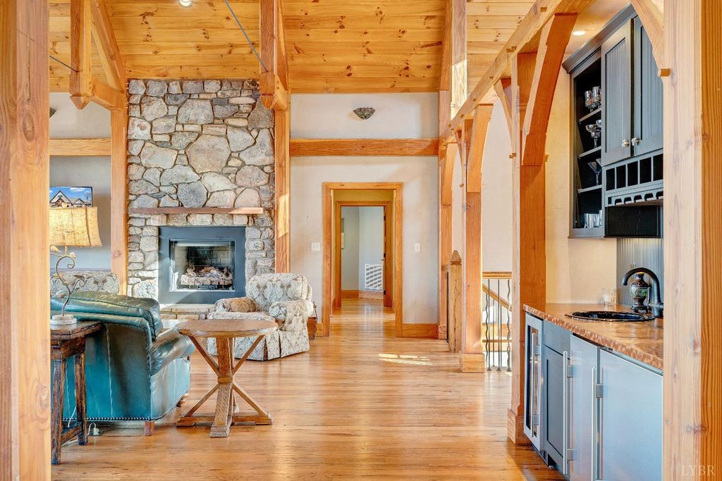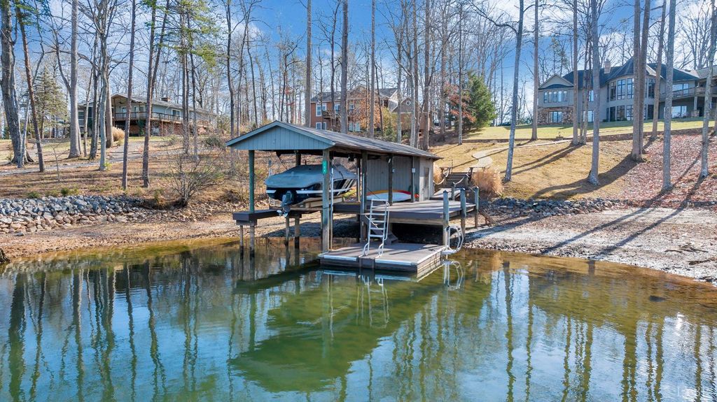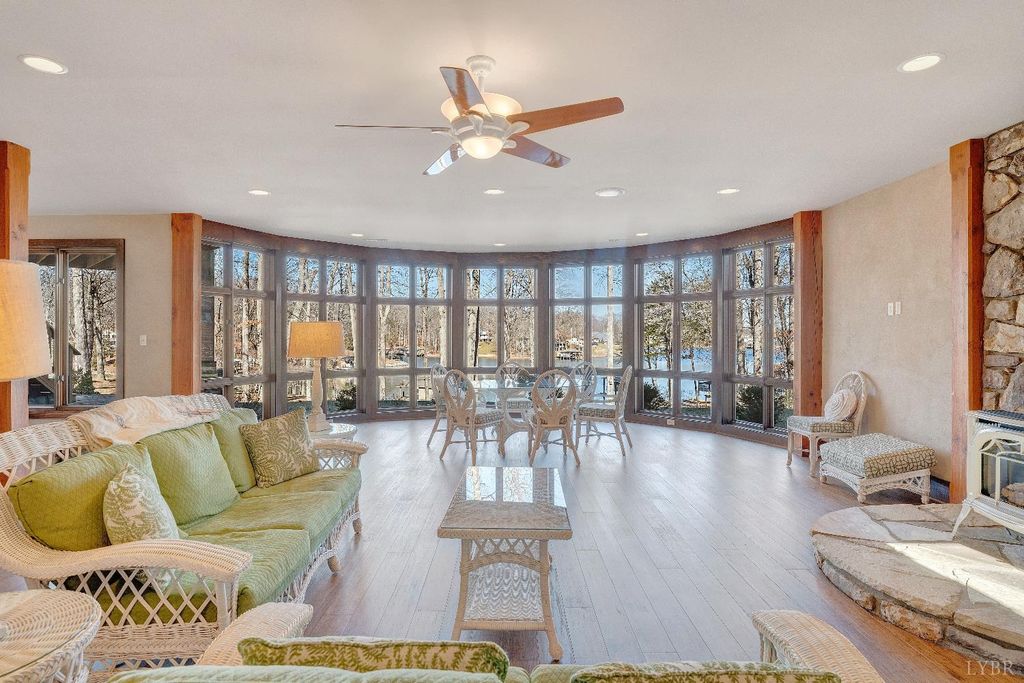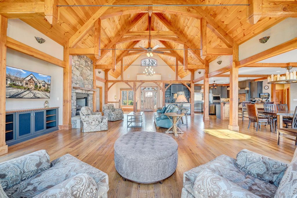 Welcome to 104 Arbor Lane, a custom-built waterfront retreat at Smith Mountain Lake designed for memorable gatherings and peaceful escapes. Completed in 2010, this 4,500+ sq ft home offers panoramic lake views, timeless craftsmanship, and refined finishes throughout. The Hardiplank and stone exterior, oversized garage, and landscaped setting create striking curb appeal. Inside, a timber-frame great room with soaring ceilings and a stone fireplace anchors the open layout. The chef's kitchen features Sub-Zero, Wolf, and Bosch appliances, soapstone counters, a copper wet bar, wine cooler, and ice-maker. A cedar screened-in porch with fireplace blends indoor and outdoor living. The primary suite offers lake views and a spa-like bath. The terrace level includes additional bedrooms, a bunk room, and second living area. Notable upgrades include geothermal HVAC, radiant heat, whole-house generator, and a dock with covered slip and lift, delivering exceptional lake living.