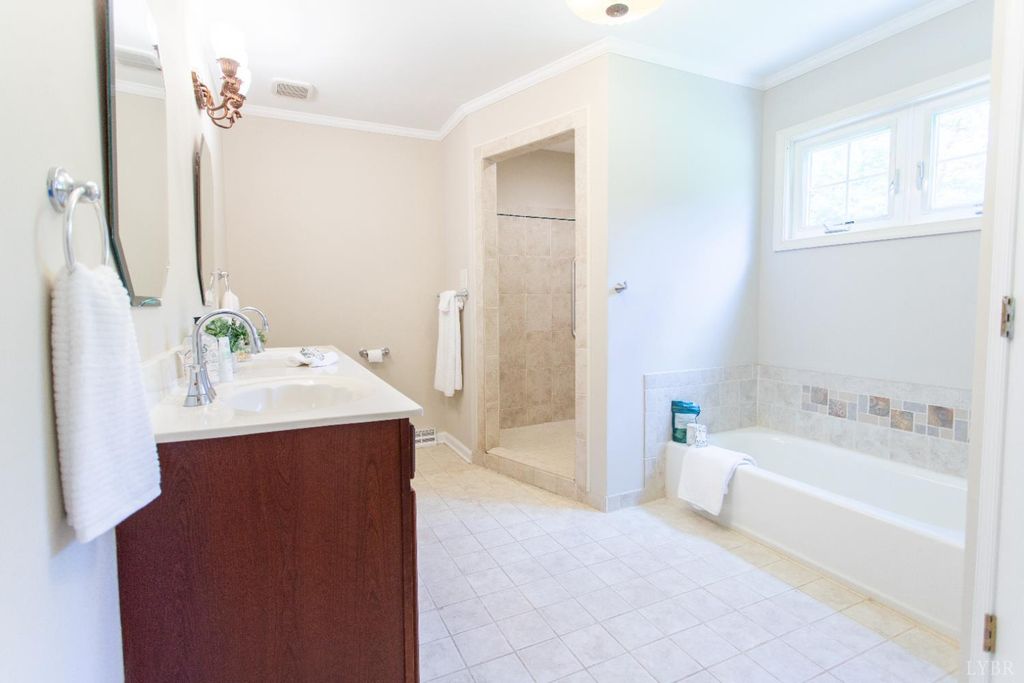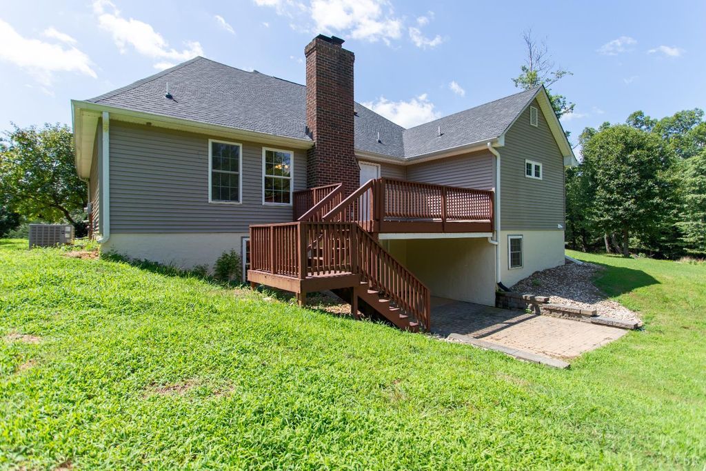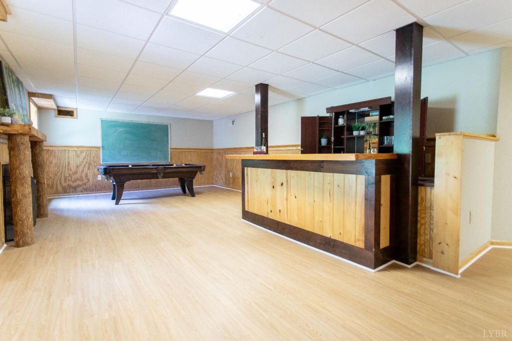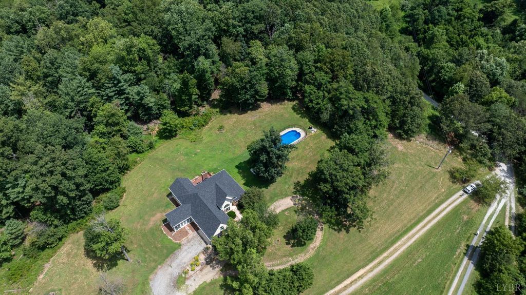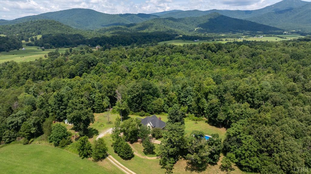 Welcome to Thrashers Creek Road, Amherst, VA a stunning 4-bedroom, 3-bath home on 14.394 private acres with breathtaking mountain views. This beautiful property blends comfort, style, and functionality for peaceful country living with modern convenience. Enjoy a beautiful living room with vaulted ceilings and a cozy fireplace. The dining area features large windows, and the updated kitchen offers new cabinets, stainless appliances, a huge pantry with coffee bar space, and access to a sunroom overlooking the views. The primary suite includes hardwood floors, a spa-like bath with soaking tub, oversized shower, dual sinks, and a walk-in closet. Two additional main-level bedrooms share a full bath. A finished bonus room over the garage is perfect for an office or guest space. The walk-out basement features a built-in bar, pool table, bedroom, bath, and storage. Outside, relax by the inground pool and explore your private acreage. Two-car garage plus extra parking. Near Thrashers Lake