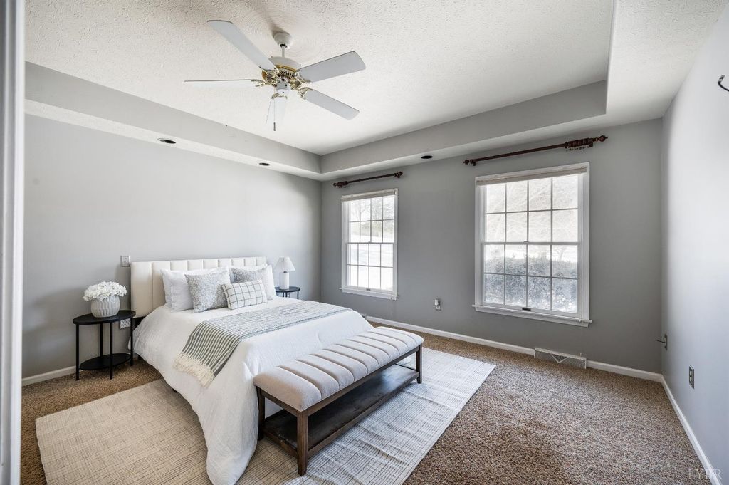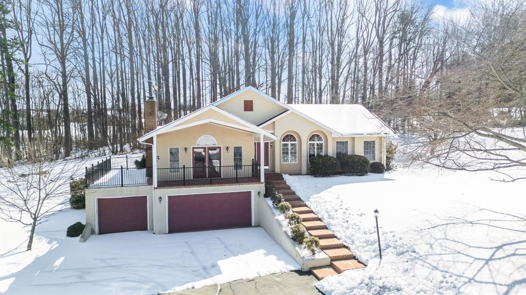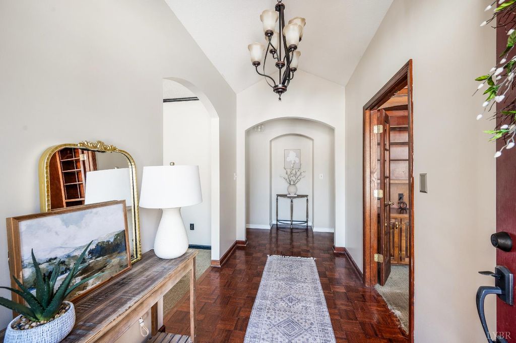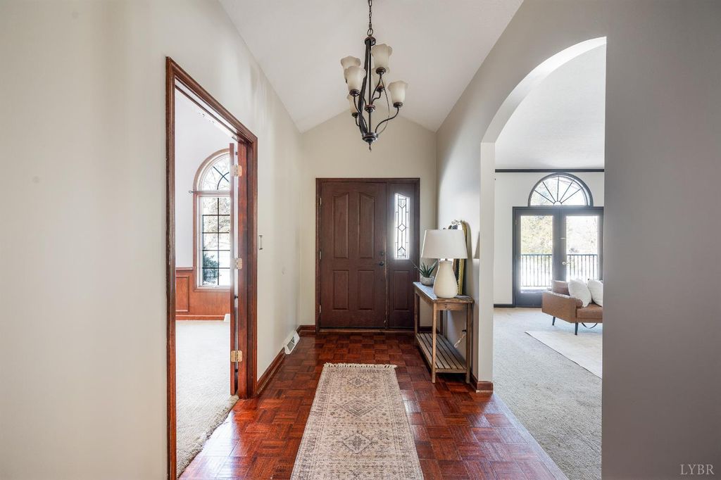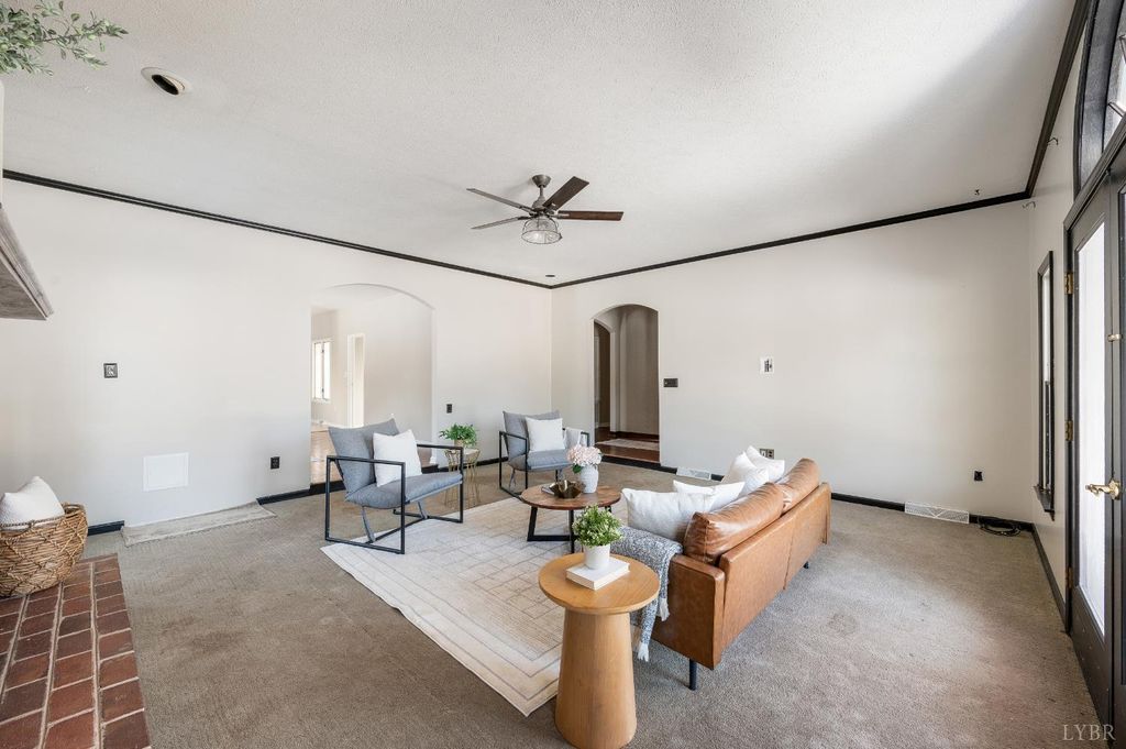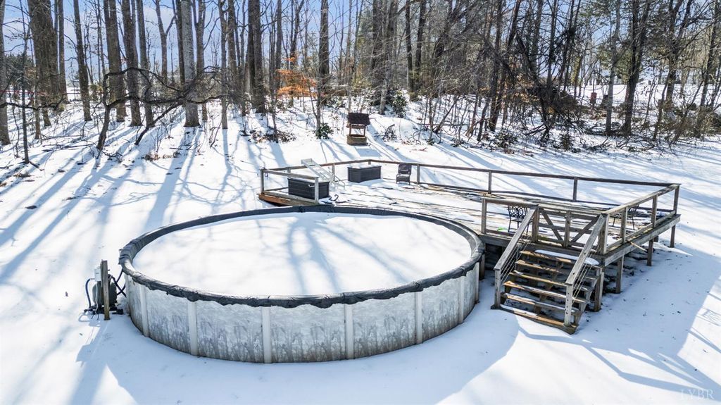 MUST SEE! Rare Spanish-style ranch offering 4 bedrooms, 3 full baths, 4,300+ sq ft, 3-car garage, & finished basement on 5.77 expansive acres in Dogwood Hills. Enjoy peaceful country living w/ convenient proximity to Lynchburg, Bedford, & SML. Highlights include cathedral foyer w/ arched doorways, French doors to private office w/ custom built-ins, oversized sunken living room w/ brick gas-log fireplace, & access to a wrap-around deck w/ stamped concrete flooring. The kitchen offers ample cabinetry, counter space, ceramic tile, pantry, & opens to a spacious dining room. The main-level primary suite features recessed lighting, walk-in closet w/ built-ins, & double separate vanities. Laundry room includes a utility sink, extra refrigerator, & washer/dryer. The finished basement adds a den, two bedrooms, full bath, & flex spaces. Outdoor living shines with a pool, pool deck, & chicken coop. Incredible acreage w/ privacy & the ability to have horses. Don't wait, call us to see this!