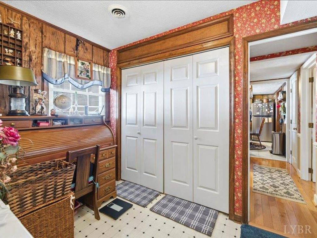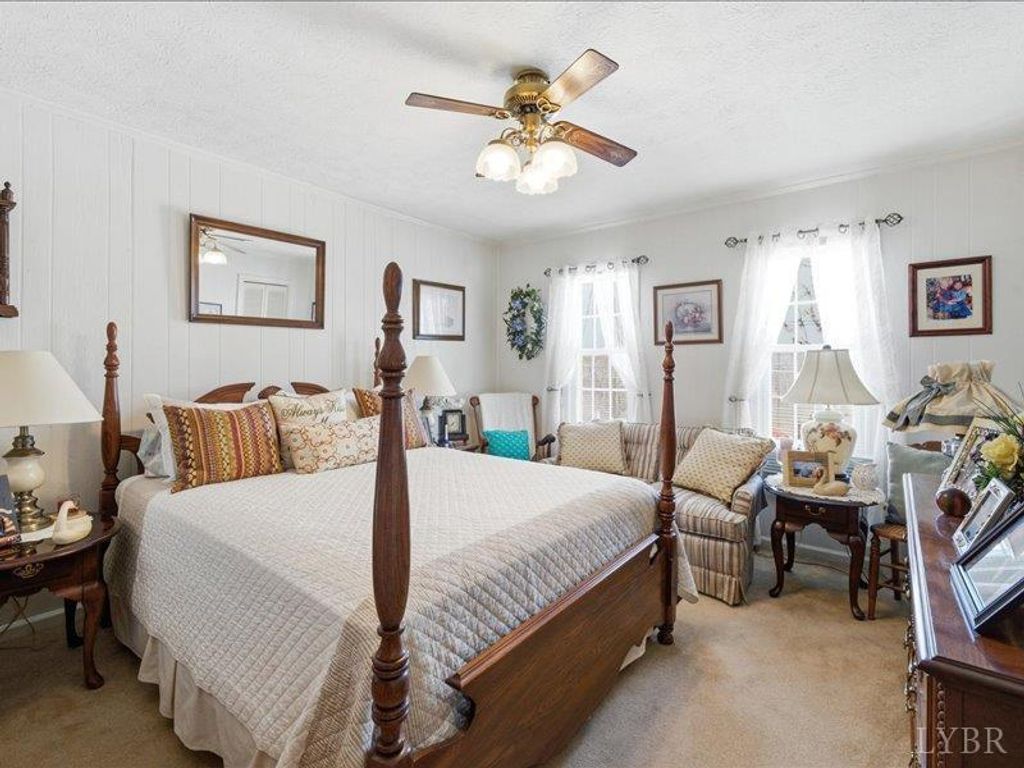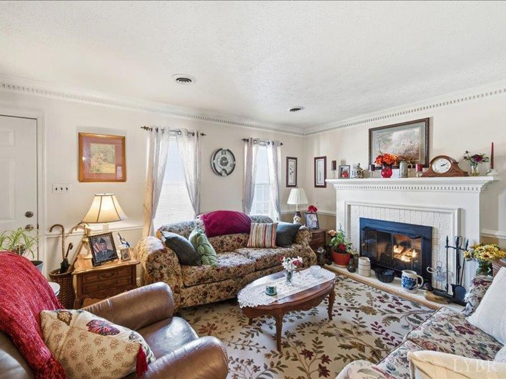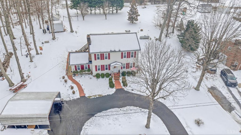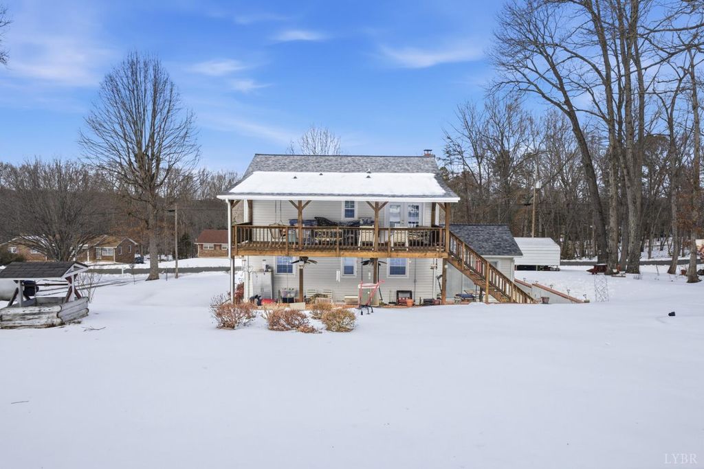 This inviting 2-story home located in the Town of Hurt featuring 3 bedrooms, 2 baths, separate dining room, laundry room, and a bonus room ideal for flex space. A cozy fireplace in the living room, hardwood floors, and a large, covered deck off primary bedroom, Outdoors offers a large partially covered patio. Paved circle driveway, two storage sheds, detached metal garage, and has 2 additional lots for more outdoor space.