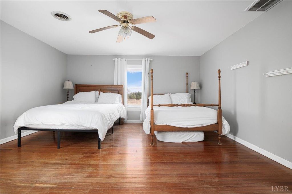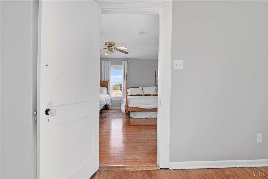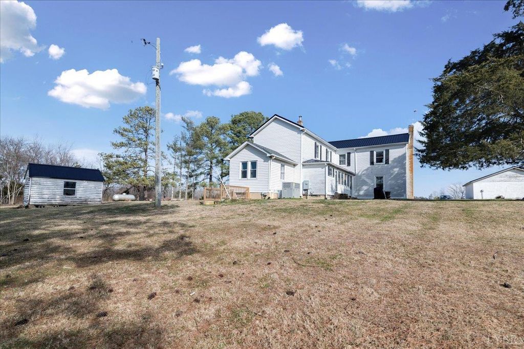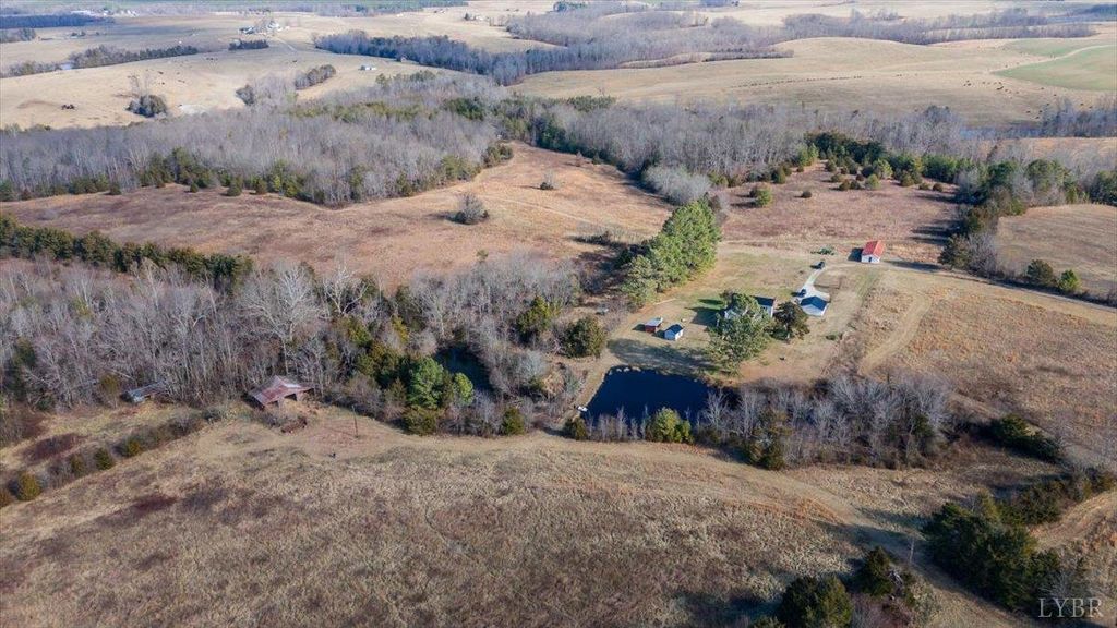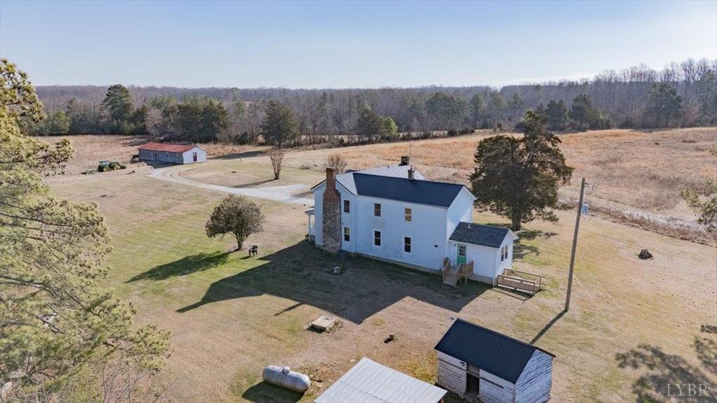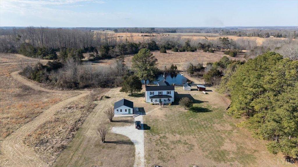 Tucked away in scenic Brookneal, this private 112 plus acre gentleman's farm is the definition of peaceful Virginia living. A tree lined drive leads to a beautifully maintained farmhouse, plus a separate office building and storage facility with stables, giving you room to work, store, and spread out. The land is a stunning mix of open pasture and natural beauty, anchored by two picturesque ponds, including a showstopper main pond that invites fishing, sunsets, and quiet mornings on the water. Original barns add timeless character, including an original barn and tobacco barn. Inside, the farmhouse offers a welcoming foyer with original wood stairs, hardwood floors, tall ceilings, bright vinyl clad windows, and spacious living and dining areas. Enjoy a new side porch, laundry/mud room, four upstairs bedrooms, a hall bath, and new HVAC system. A rare retreat that feels worlds away, yet ready for your next chapter.