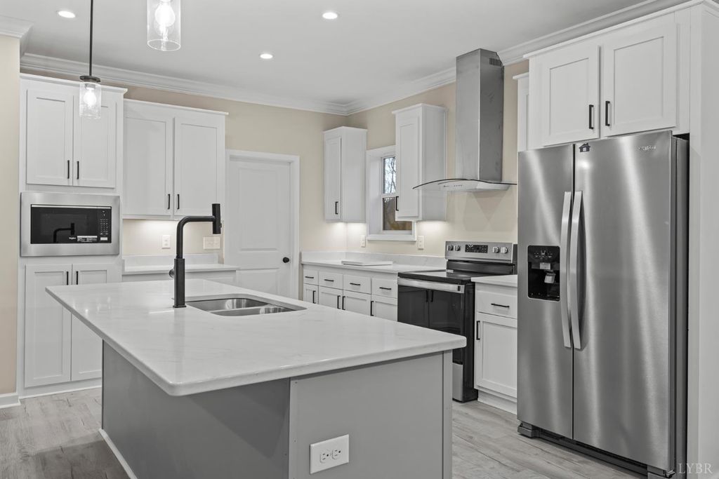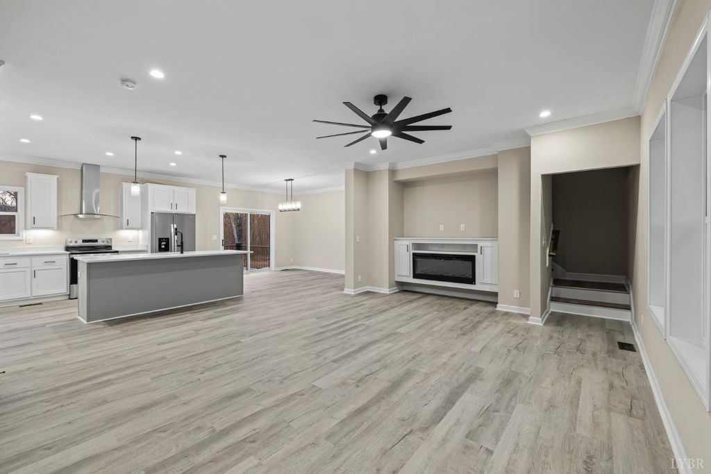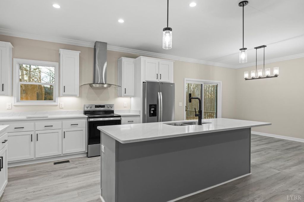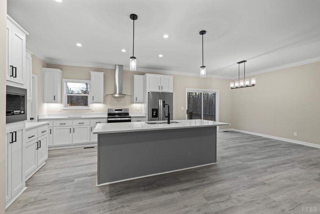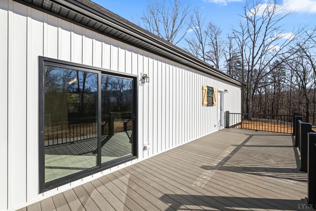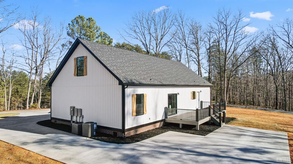 200 Saunders Point Road. NO HOA, Road Maintenance agreement is only $100/year. Enjoy lake views at Smith Mountain Lake in this 3BR/3BA custom home. The main level offers 1,800 sq ft, with an additional 920 sq ft upstairs featuring a full bath, storage, and a 16' x 60' family/theater space. Features include a concrete driveway with boat parking, composite decks, black windows, solid-core doors, hidden pantry, LVP flooring, and quartz countertops. Built with 2x6 exterior walls, dual-zone heat pumps, and a 9/12 pitch roof.