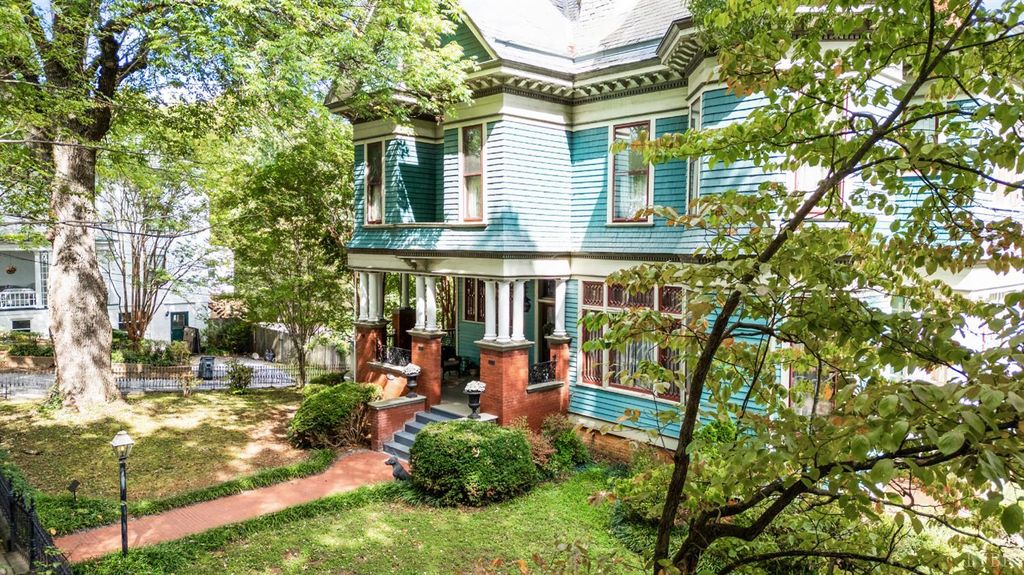 Step into timeless elegance with this magnificent Queen Anne Victorian, built in 1898 by renowned architect E.G. Frye for industrialist George P. Watkins. Situated in the heart of the Garland Hill Historic District, this grand residence combines 19th-century craftsmanship with modern livability across over 5,500 square feet.Soaring ceilings, ornate moldings, and original hardwood floors throughout.Graceful pocket doors, arched entryways, and grand staircase with intricate woodwork.Expansive parlor, formal dining room, and library/office with fireplaces. Updated kitchen with space to customize while preserving period charm. 4 spacious bedrooms and 4 bathrooms, including a primary suite with en suite bath. Distinctive Queen Anne faade with decorative gables and detailed woodwork. Large corner lot with mature landscaping, garden potential, and historic fencing. Trellised side porch, perfect for morning coffee or evening wine. Off-street parking and two car garage with extra lot on side st