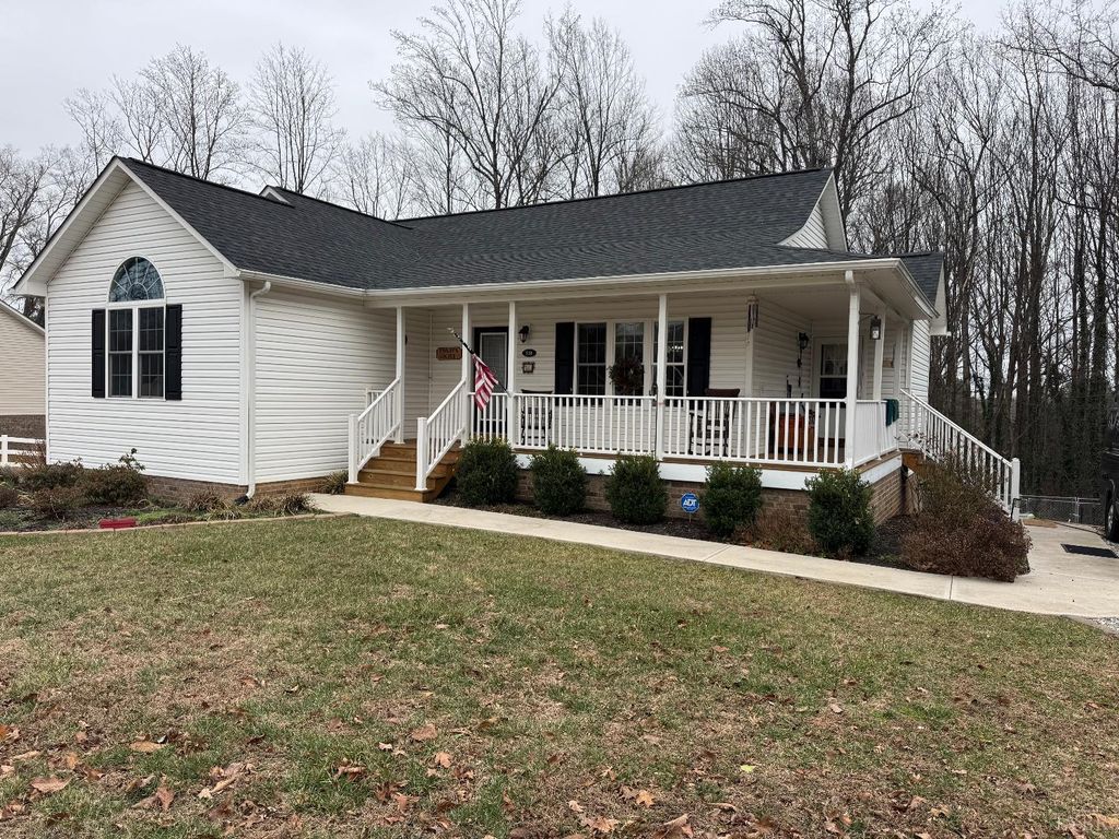 Come see what historic Appomattox has to offer in single level living! This beautiful and inviting home with a wrap around porch has all living areas on one level. Heated and spacious insulated unfinished walkout basement offers potential use as a workshop. Gas fireplace is a convenient bonus feature for living room. Attractive Levelore (R) shades are throughout most of this home and provide privacy along with abundant natural light. Primary bedroom ensuite comes with a beautiful granite double vanity, walk-in shower and walk-in closet. Attractive kitchen has exceptionally high quality granite countertops, all stainless Whirlpool appliances and beautiful white cabinets. ADT security system already is in place for potential transfer to new owner. The exterior of this home has a LeafFilter(R) gutter protection system with a lifetime warranty. Wonderful location with Town of Appomattox offers convenience of nearby amenities for a fortunate prospective new owner!