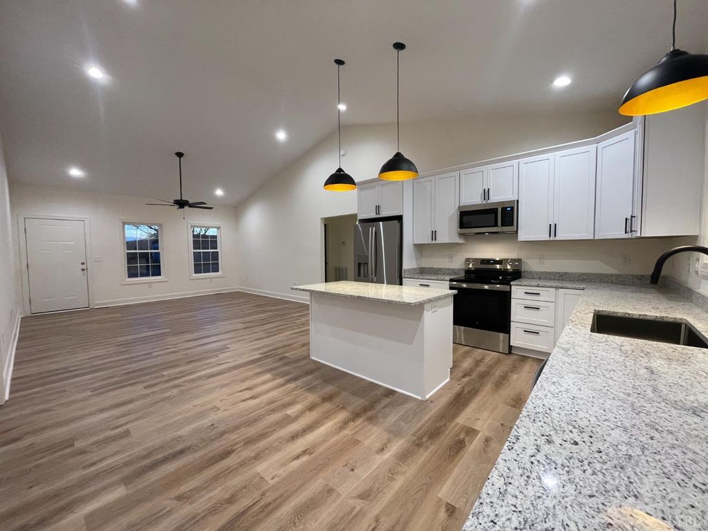 Incredible new build in the middle of it all. Affordable housing in downtown Bedford! Lovely open great room with cathedral ceiling. Split bedroom design. Main level laundry/ living. French doors to private rear deck. Granite countertops, center island for ample counter space and storage. Upgraded primary bath with walk in shower and dual vanities. Rare find at this great price!!