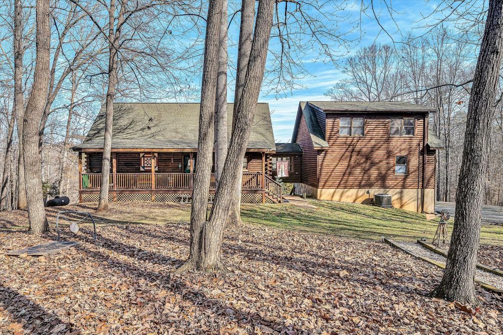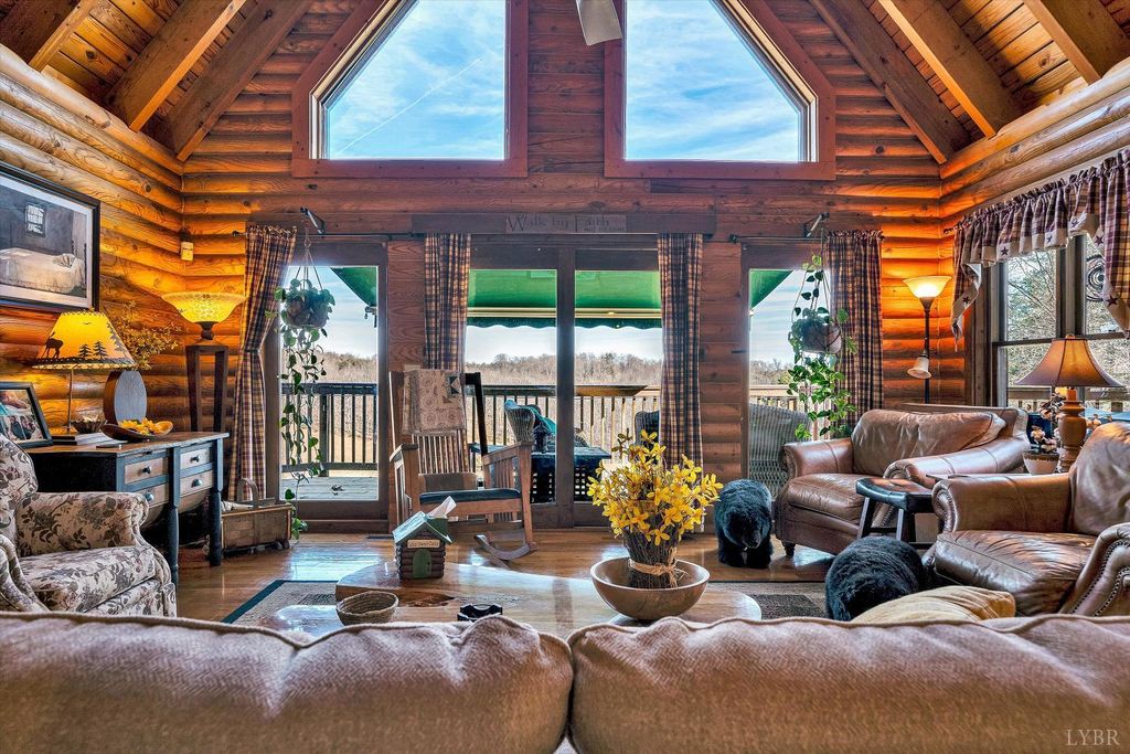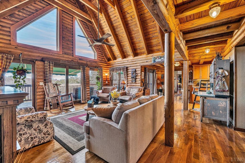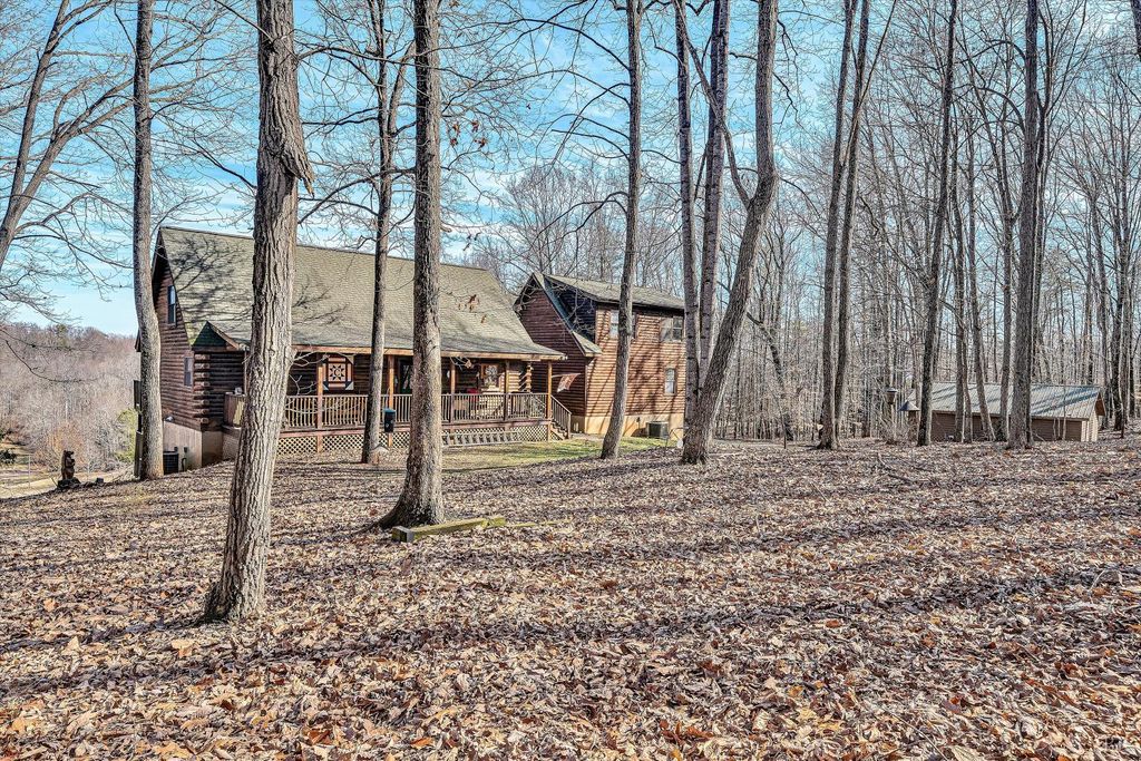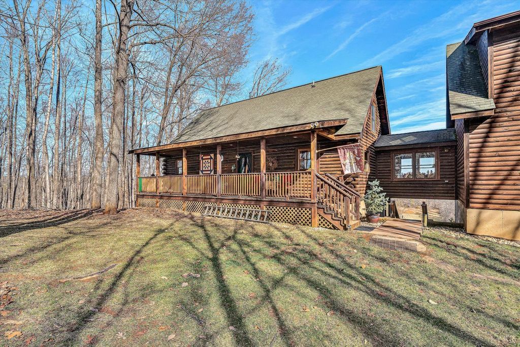 Your Private Nature Retreat! Perfectly situated on 8.10 sprawling acres, this custom-built Southland Log Home offers a rare combination of serene views & refined craftsmanship. Designed to harmonize with its natural surroundings, the residence features an inviting open-concept floor plan characterized by soaring cathedral ceilings, rich hardwood flooring, & expansive walls of windows that flood the home w/natural light. The home features 5 BR, 3 full BA, & guest BA. Lower level would be perfect for an In-Law suite (kitchenette). Great home for entertaining. 2 decks & expansive patio, 2 car attached garage & detached garage. This home offers the peace of the countryside without sacrificing convenience. Beautifully landscaped, sunrise views & above ground pool. 2 highly efficient Hybrid heat pumps.