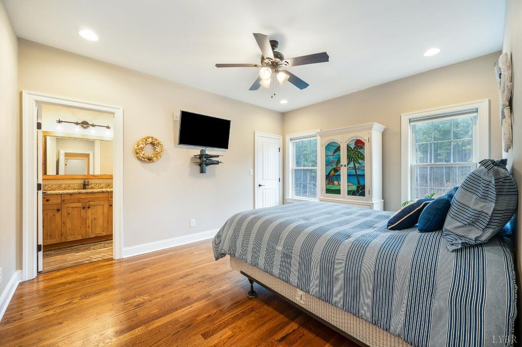 Your DREAM getaway awaits on 158 acres in BEDFORD County, JF schools. Incredible property with a fabulous home featuring over 4,500 sq. ft., plus outdoor living spaces to relax and entertain, and your private pond. Fun NEVER ends with over 2 miles of trails ideal for 4-wheelers and ATV's. You will LOVE entertaining your guests, the HOUSE to BE for fun, the big game, and so much more. Secluded retreat, perfect for unwinding, relaxing by the pond, the sounds of nature. AMAZING! Sensational sunsets, and step inside to a charming great room with stone fireplace flanked by custom built-ins. Great room is open to the kitchen with granite, custom cabinets, gas stove, stainless appliances, pantry nearby, dining area. Coffee and conversation in the sunroom, or enjoy sunrises from the multiple covered porches overlooking the pond, or patios. Primary suite with pampering bath. Two other bedrooms on main level. Terrace level features family room, wet bar, full BA, BR, office, garage, storage.