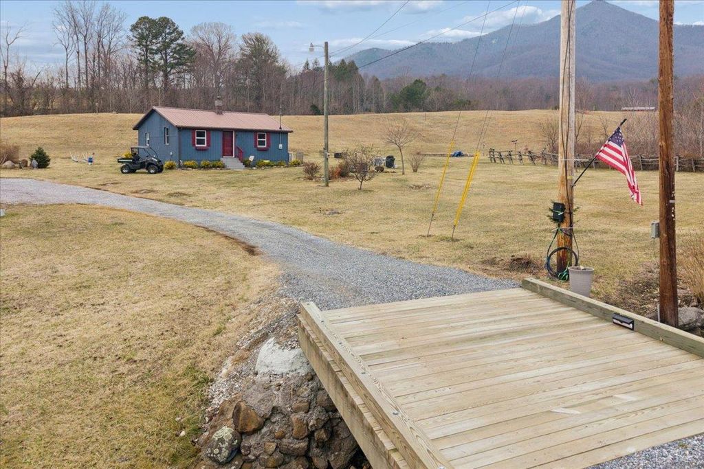 Over 21 acres of breathtaking land featuring stunning mountain views truly a one-of-a-kind property. Beautiful rolling terrain with endless possibilities and so many opportunities to build, expand, or simply enjoy as a private retreat. Walking trails wind throughout the property, and peaceful creek frontage adds to the serenity. Conveniently located on the outskirts of town, offering privacy while still being close to amenities. The renovated 1 bedroom, 1 bath cottage offers cozy living with a woodstove and can serve as a quiet, peaceful, and tranquil full-time home or weekend getaway. A must see to truly appreciate all this property has to offer.