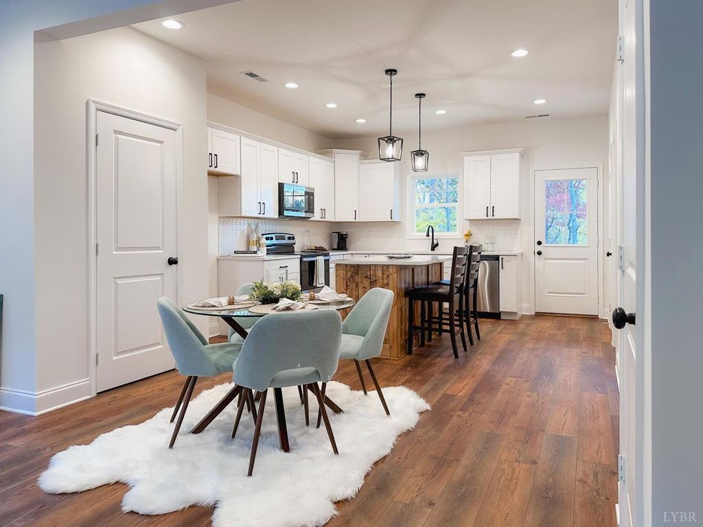 Designed with Character, Crafted with Care, Surrounded by Nature...Welcome to the Neighborhood...Creekstone! This newly built 3 bed, 2.5 bath end unit townhome perfectly balances modern farmhouse charm with coastal-inspired design. From the shiplap walls & natural wood accents to black hardware and custom built-ins, every detail has been thoughtfully chosen. The open floor plan flows effortlessly into a stylish kitchen and cozy living space, while the mudroom adds everyday function with a polished touch. This low-maintenance home offers gorgeous LVP flooring throughout the main level, stained stair treads, quartz countertops, walk in closet & double vanity adorn the primary bath! A large covered rear porch overlooks privacy and peaceful views with easy access to the Heritage Park nature trails! This brand new community is conveniently located minutes from Liberty University, CVCC, Shopping, Dining, Medical, Downtown, & More! Move-in ready 3 weeks after contract! Tons of parking!!!