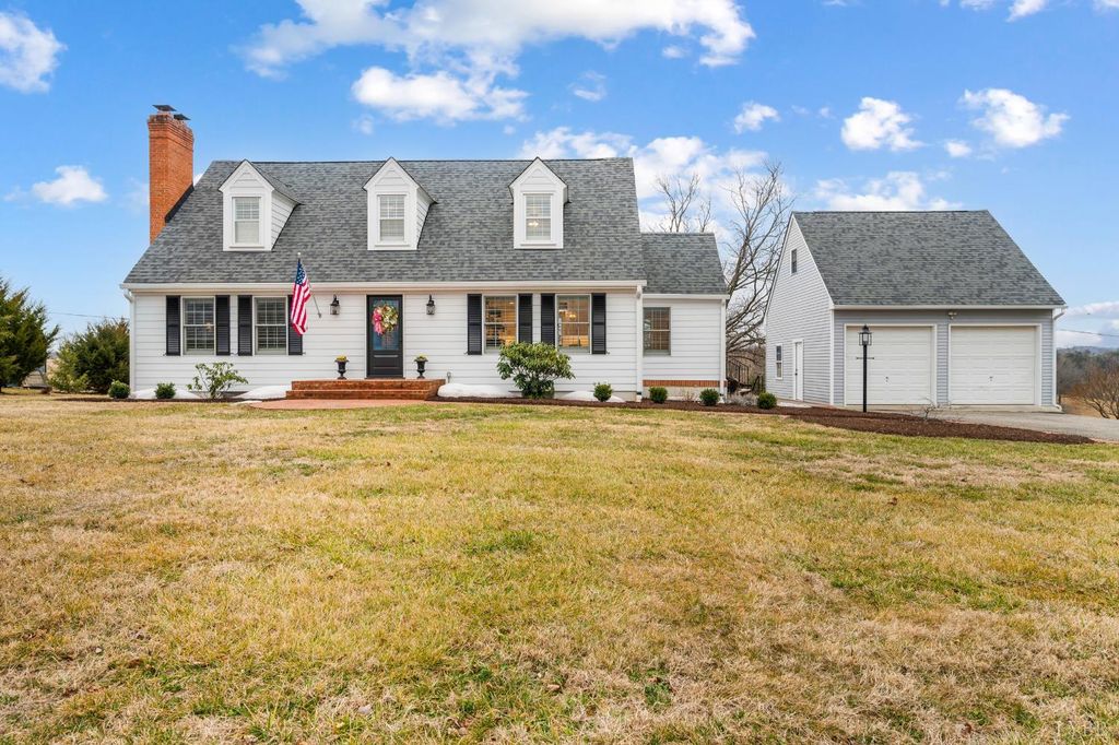 FABULOUS home on 1+ acre, graciously remodeled, meticulously maintained, and whispers the charm of a classic CAPE COD with truly unbelieveable mountain views. The manicured grounds, patios for relaxing and enjoying sweet tea while watching the sunsets, or morning coffee and sunrises from the rear patio. Step inside to a home transformed with elegant style, a special place to welcome guests and entertain. Enjoy fireside chats in the living room, or entertain in the huge dining room, kitchen with center island, gorgeous cabinetry, counter tops, stainless appliances, pantry, gleaming hardwoods. Main level bedroom, plus multiple bedroom spaces on second level with spacious room, plus office/nursery. Terrace level is ideal to enjoy the big game in the massive family room, plus space for gym/homeschool room, private office, storage and more. The 2-car detached garage with loft above offers even more storage. There are so many updates, even the siding on the home has been replaced! WOW!