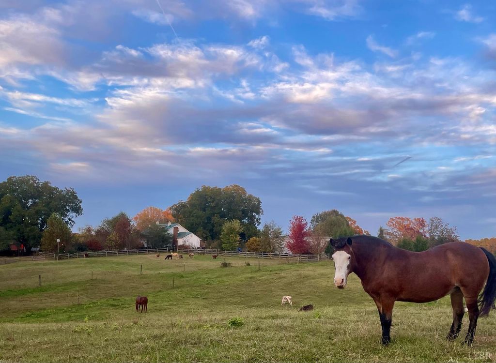 Starlight Farm is the perfect country escape! This exceptional 28 acre property is nearly all open pasture with generous road frontage, a scenic creek, and a well stocked pond, ideal for horses, cattle, or other livestock. The charming circa 1920 farmhouse sits on a picturesque knoll at the end of a long private drive and features soaring ceilings, beautiful original wood floors, and a spacious kitchen with newer appliances. Recent updates include a new back deck, heat pump with gas furnace backup, replacement windows, and a metal roof (2019). A second residence offers a fully furnished 2BR 2BA mobile home with its own new septic, perfect for guests, in laws, or rental income. Outbuildings include a 23x48 barn, a 40x50 barn with horse stalls, and a run in shed. Property features fenced and cross fenced pastures and a riding ring. Located about 2 miles from Historic Appomattox and minutes from Falling River Country Club.