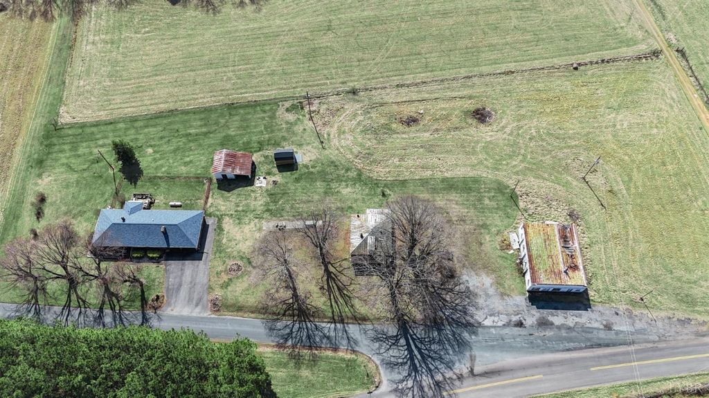Great opportunity on 2.89 level acres! This solid 4-bedroom brick ranch offers space, versatility, and recent updates. The property includes multiple outbuildings, an older fixer-upper home with potential rental income, and a 2,000 sq ft storefront/storage building ideal for many possible uses. Outside you'll find a paved driveway, covered carport, new fenced backyard for pets, and a deck/patio overlooking neighboring farmland. Inside features a recently updated custom kitchen with abundant cabinet space, tile backsplash, stainless steel appliances, and updated flooring. The main level includes two living areas, a fireplace, four bedrooms, and a full bath. Hardwood floors are believed to be under the carpet and could be refinished. Major updates in the past three years include roof, HVAC system, Generac backup generator, and kitchen renovation. Schedule your showing today to see all the possibilities! Property being sold as-is.
