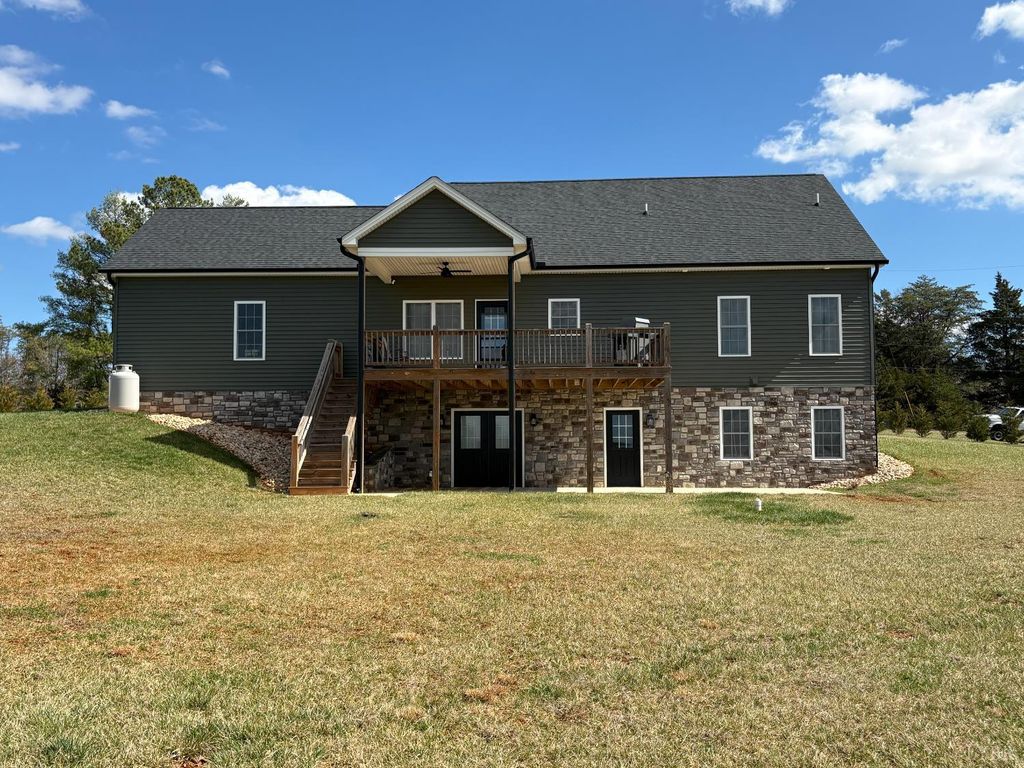 Welcome Home to Modern Country Living! This like-new gem on 2.5 beautiful acres offers the perfect blend of high-end finishes and functional main-level living. The heart of the home is an open-concept kitchen featuring quartz countertops, soft-close cabinetry, a farm sink, a large island, and a walk-in pantry. The great room impresses with exposed wood beams and a stunning stone gas log fireplace. Retreat to the primary suite, complete with a trey ceiling, a massive tile shower, a double vanity, and a walk-in closet with custom built-ins. Step outside to the covered rear deck or the massive 35x12 concrete patio to enjoy your private, landscaped backyard. The finished walk-out basement adds incredible value with a second stone fireplace, a full bath, and a versatile room currently used as a 4th bedroom. Plus, there is a massive unfinished area for all your storage needs. With an oversized garage, concrete drive, and LVP flooring throughout. Close to LU and shopping!