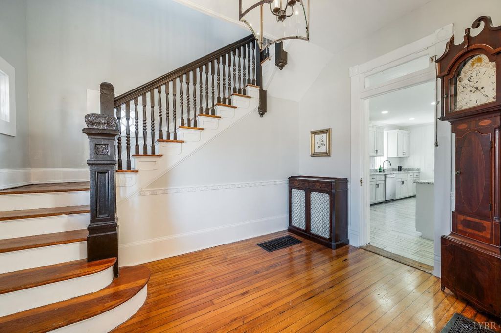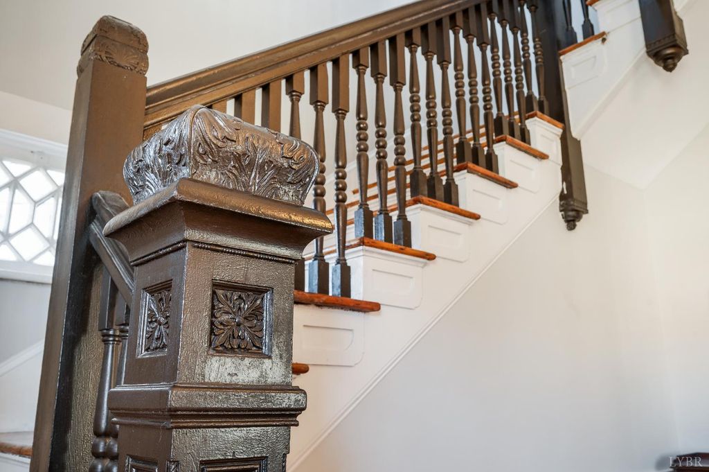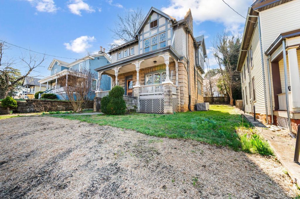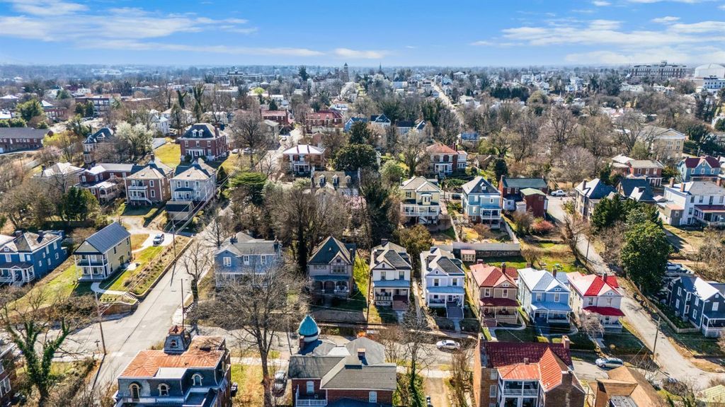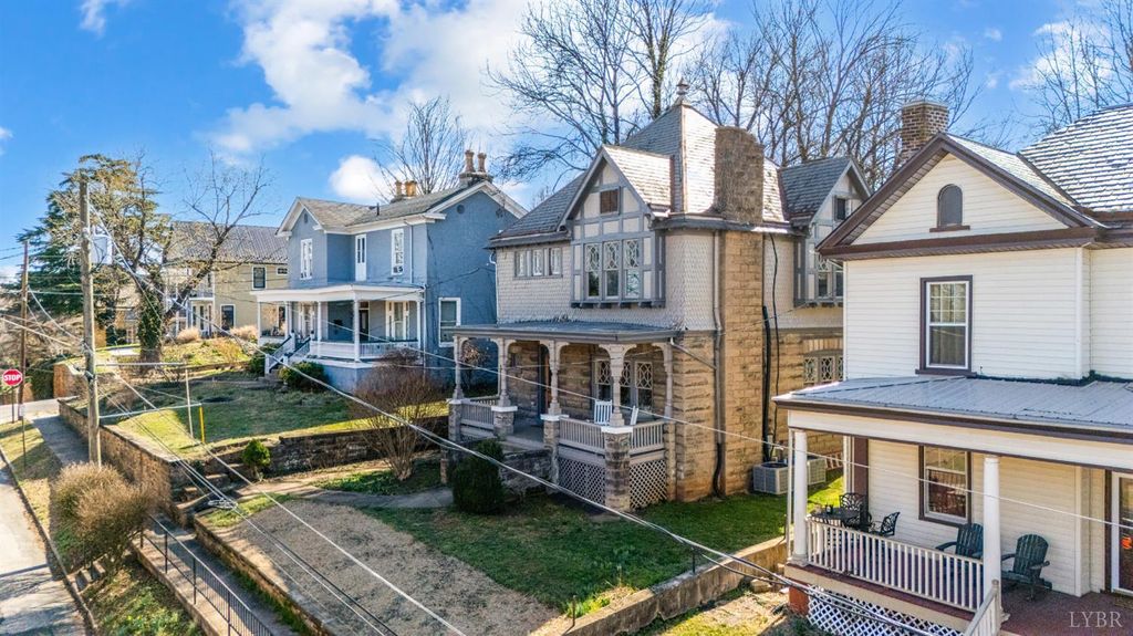 Perched atop Federal Hill in Downtown Lynchburg, this home is a unique mix of Tudor and Queen Anne styles with it's elaborate shingle work, block base, and ornate woodwork. Sitting above the street gives you privacy, all while being seated right within walking distance of all the activities and shops of Downtown. The gracious foyer welcomes you in with its intricate original staircase and heart pine floors and leads you into the large living room and dining rooms with completely unique original windows. All of these rooms are so bright, you'll be surprised when there aren't even lights on! The large updated kitchen features modern cabinetry, granite counters, stainless steel appliances and leads out to your fenced flat yard, the ideal urban oasis perfect for pets or kids! Upstairs you'll find 3 generously sized bedrooms, a custom tiled bathroom (in addition to the one downstairs) and an upstairs laundry! Don't miss the second story porch for views over the yard!